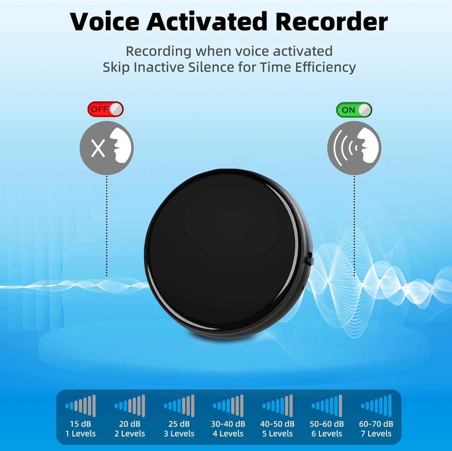 Record only when a sound is detected, saving valuable storage space and battery life. By adjusting the recording threshold, the device takes over seamlessly and provides a hassle-free and hands-free recording experience, so you can capture the most important things without worry.