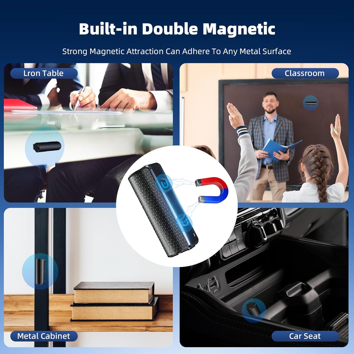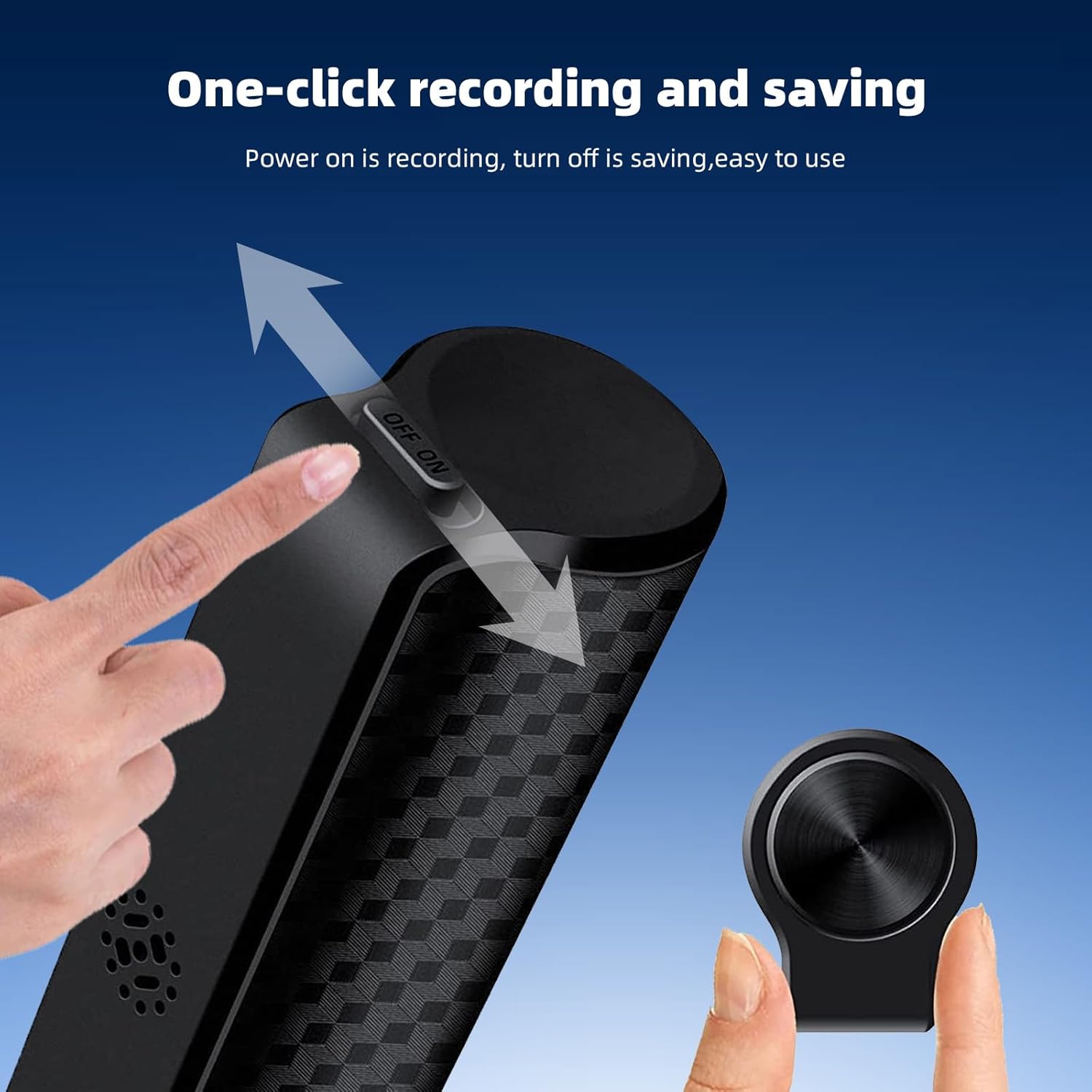 • Диктофон с магнитен дизайн: този мини диктофон може лесно да се прикрепи към бюра, парапети, хладилници, автомобилни седалки или други метални повърхности. Можете да го поставите по всяко време и навсякъде, без да бъдете забелязани или да заемате ценно място на бюрото. Побира се лесно в чантата, джоба, куфарчето или якето ви, което го прави идеален за правене на снимки в движение.