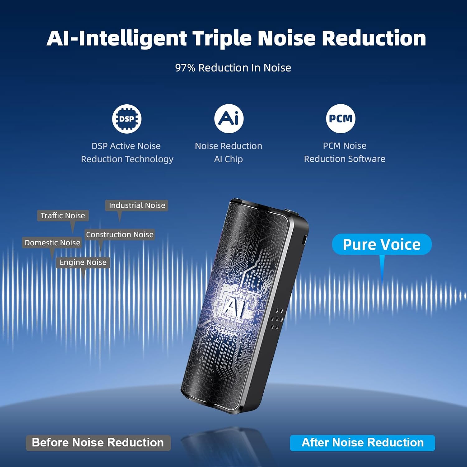 • КАЧЕСТВО НА ЗАПИС Този мини диктофон е оборудван с микрофон за намаляване на шума и използва интелигентна PCM технология за намаляване на шума, за да записва звук на 360° и да улавя шум от по-голямо и от по-малко разстояние. Получавате кристално чист, висококачествен стерео звук със 1536 kbps. Отличното качество на звука отговаря на изискванията на студенти, журналисти, меломани и много други.