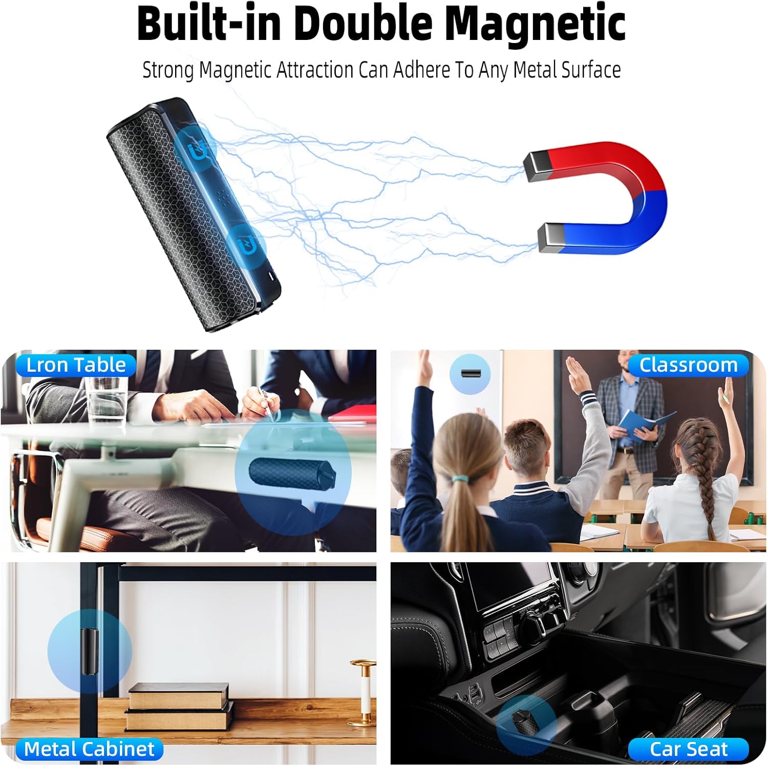 Снабден с магнит за лесно закрепване към метални повърхности като бюра, маси и автомобилни седалки. Магнитното записващо устройство може лесно да се постави там, където ви е необходимо.