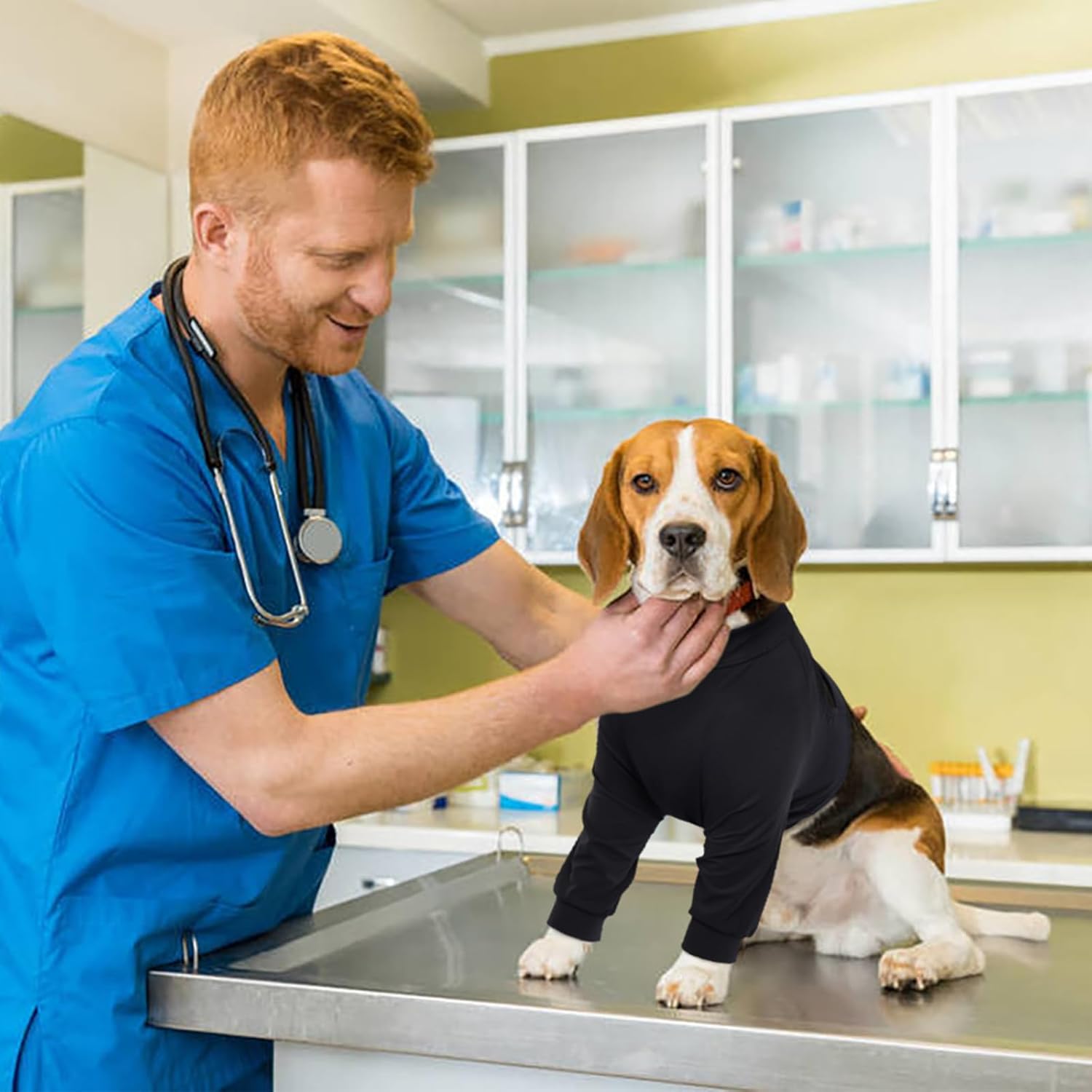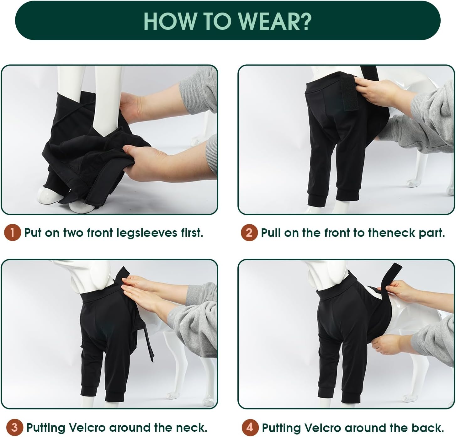 • [Универсална употреба]: Идеален за следоперативни грижи, кожни проблеми, обриви, изгаряния и алергии. Този възстановяващ костюм за предните крака на кучетата може да се използва и за покриване на мехлеми и превръзки. Той е предназначен да предпазва лакътните стави на кучето от косопад и струпеи, като същевременно позволява лесно ползване на тоалетна по време на разходки и игра.