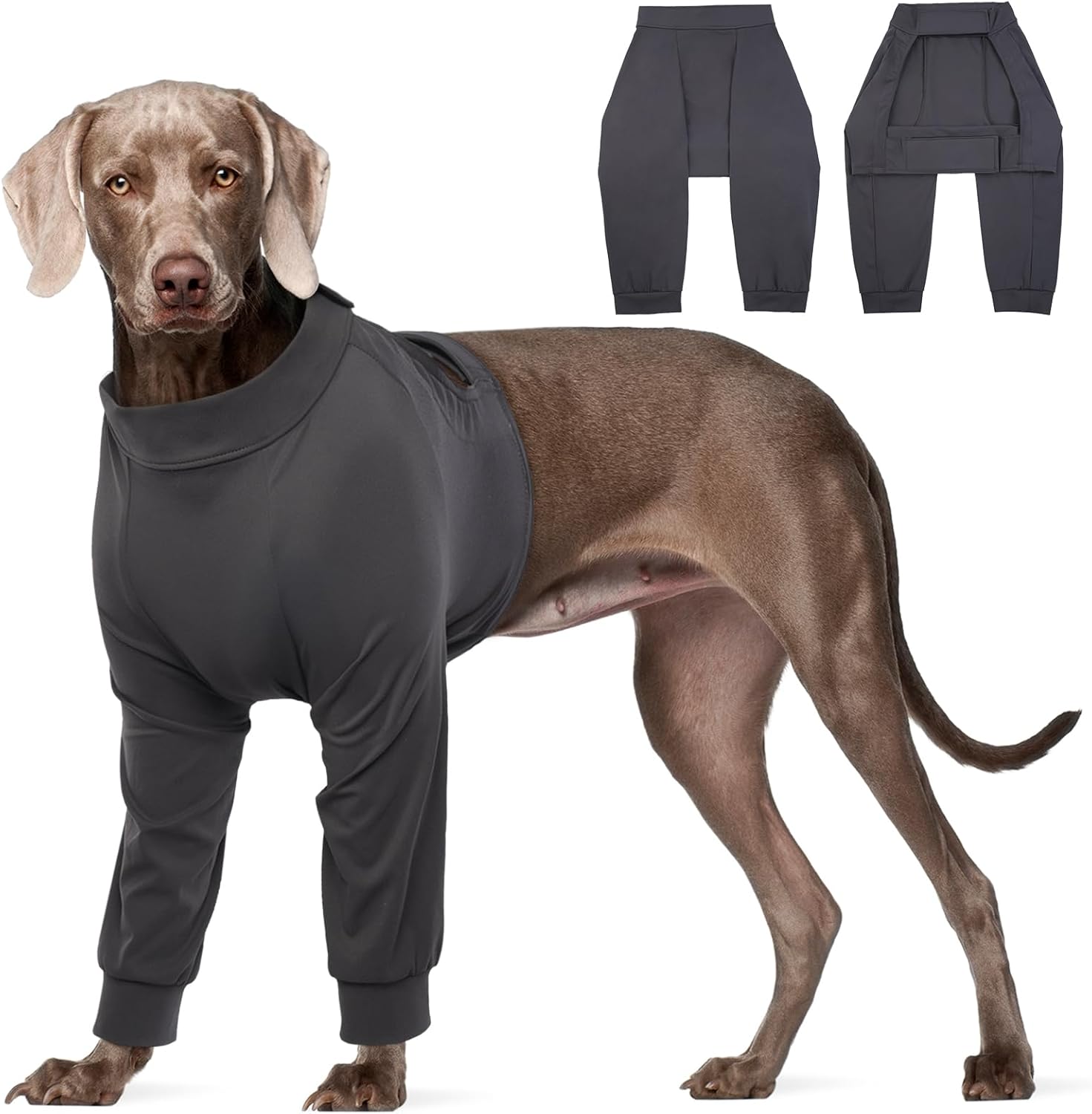Дишащ боди костюм Kuoser за кучета след операция, антифибърен боди костюм за кучета, облекчаване на рани от декубитус за кучета, превръзка за лакът за кучета, тъмен XXL