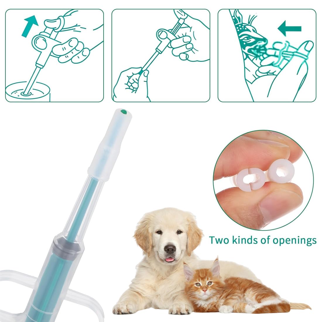 Ефективно приложение на лекарства: Този дозатор за таблетки за котки позволява таблетките да бъдат безопасно и дълбоко вкарани в гърлото на животното. Това минимизира вероятността таблетката да бъде изплюта и улеснява приложението на лекарства, дори на капризни животни.