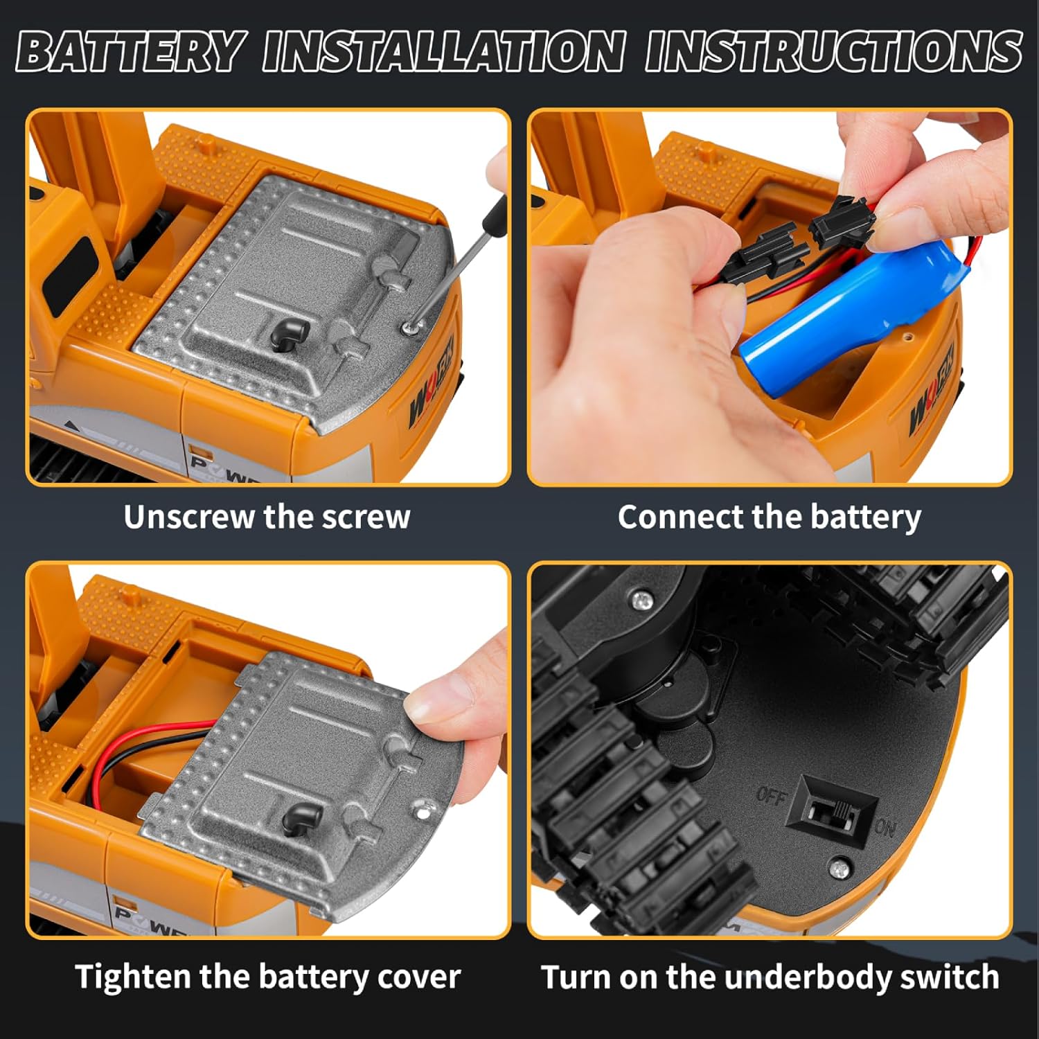 • Реалистична играчка багер - С дистанционното управление има 6 канални функции за движение напред и назад, завиване надясно и наляво, копаене и деинсталиране, автоматична демонстрация. Играчката багер с дистанционно управление е напълно функционална и наистина може да копае със симулирана светлина и реалистичен звук на двигателя. Нека децата изпитат истинската драгираща работа.