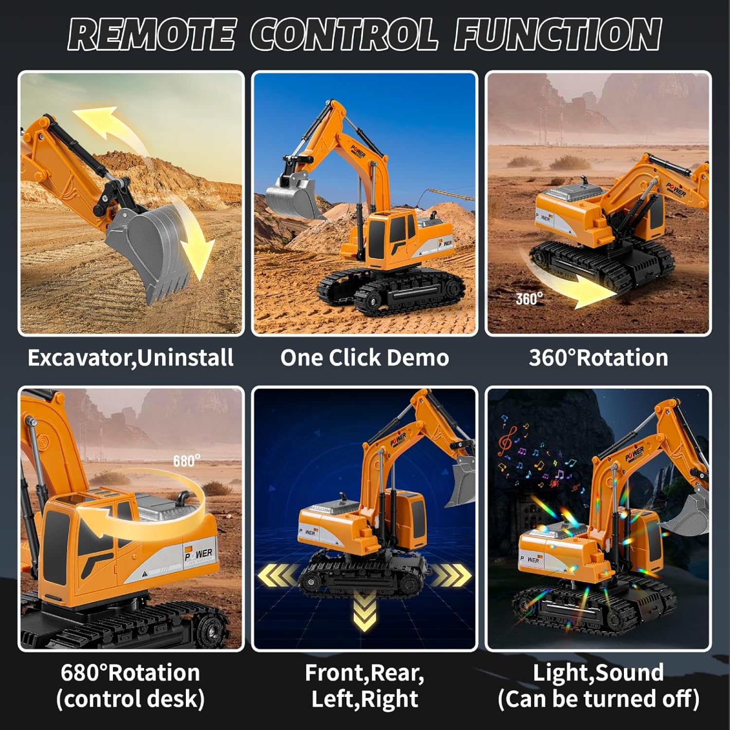 • Напълно функционален RC багер: можете лесно да управлявате този играчка багер, за да се движи във всяка посока. Движете се напред/назад, завивайте надясно/наляво, копайте, демонстрирайте с един бутон, има още много оперативни комбинации, които ви очакват да изследвате! Децата несъзнателно ще подобрят координацията си между ръцете и очите, докато се забавляват. Предлага се подаръчна кутия. Не пропускайте тази страхотна изненада за вашите деца!