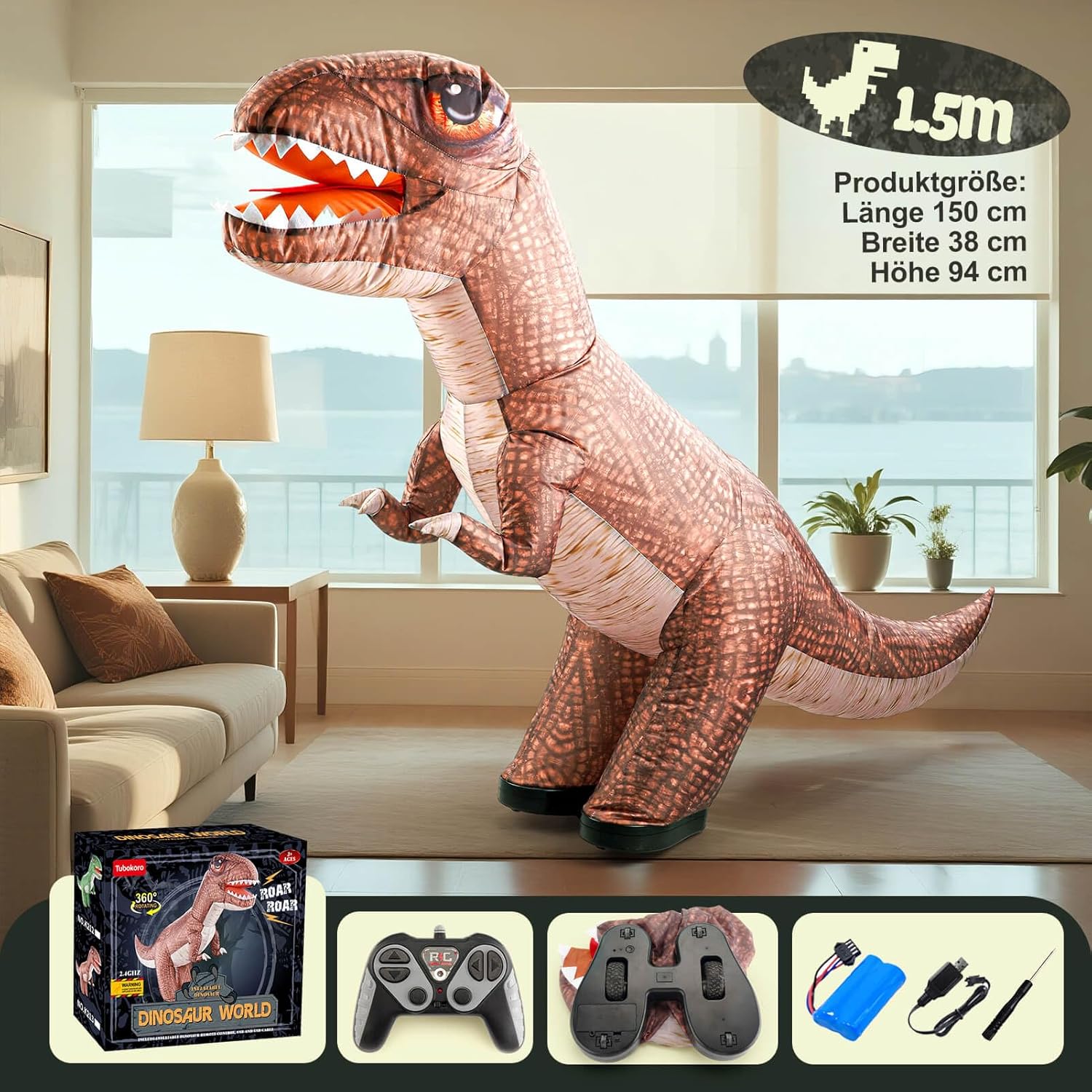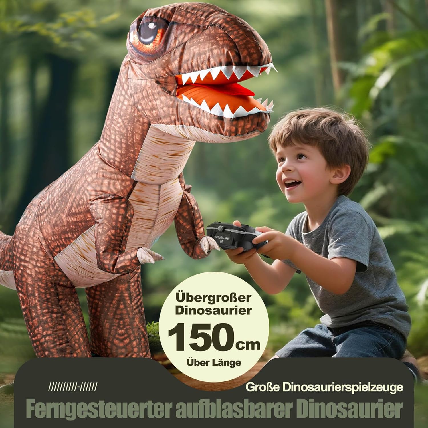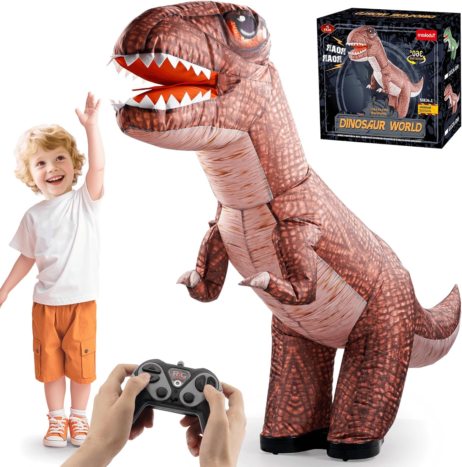 Дистанционно управляван динозавър, 150 см надуваем динозавър с дистанционно управление, електрическа играчка динозавър със звук, въртене на 360°, движение в 4 посоки, играчка подарък за деца над 3 години