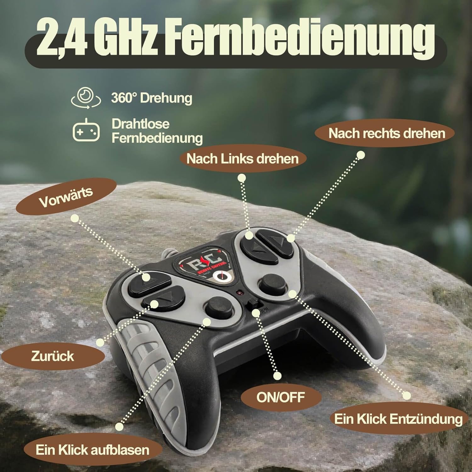 • Дистанционно управляван динозавър на 2.4 GHz: симулационната играчка динозавър съчетава елементи от динозаври и RC колички, за да стигне до динозаврите пеша. RC динозаврите се движат със звукови ефекти на динозаври, сигналът за дистанционно управление на 2.4 GHz е стабилен, може да се върти напред/назад/наляво/надясно и да се завърта на 360°. Представете си, че децата ви гонят тези динозаври из къщата, колко щастливи ще бъдат?