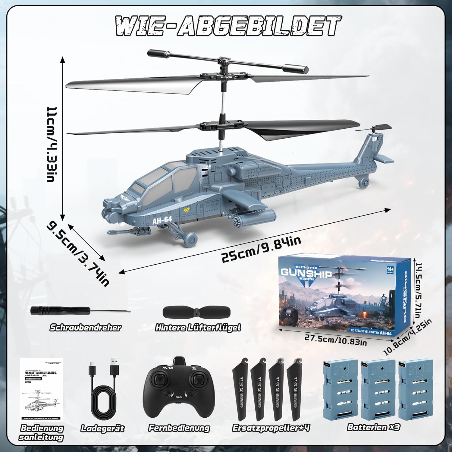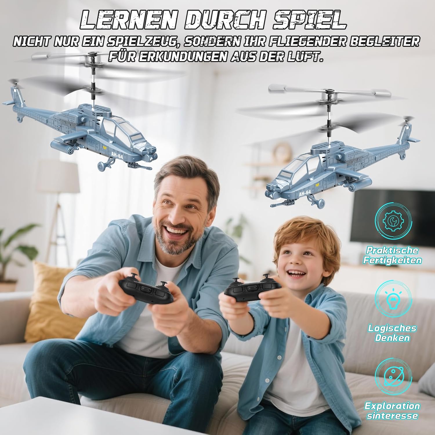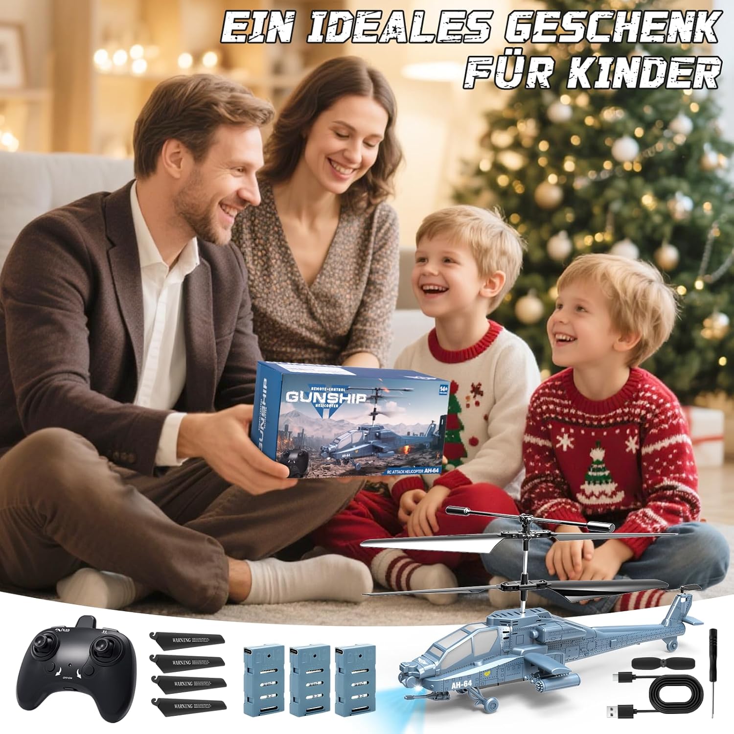 • Идеален подарък за деца: тази играчка хеликоптер е не само мощна, но и оборудвана с готин дизайн. Вградените LED светлини я правят особено привлекателна по време на полет и позволяват лесно управление с впечатляващ визуален ефект дори при слаба светлина. Независимо дали е подарък за рожден ден, изненада за празника или малък подарък - този дистанционно управляван самолет е идеалният избор за деца и любители на полетите.