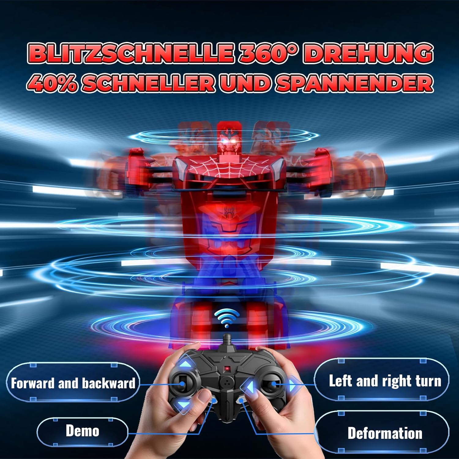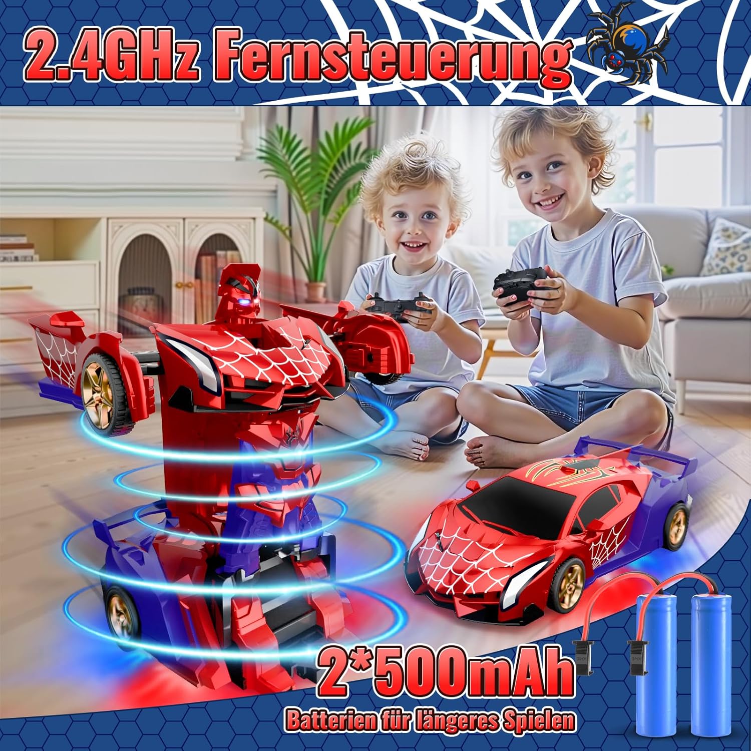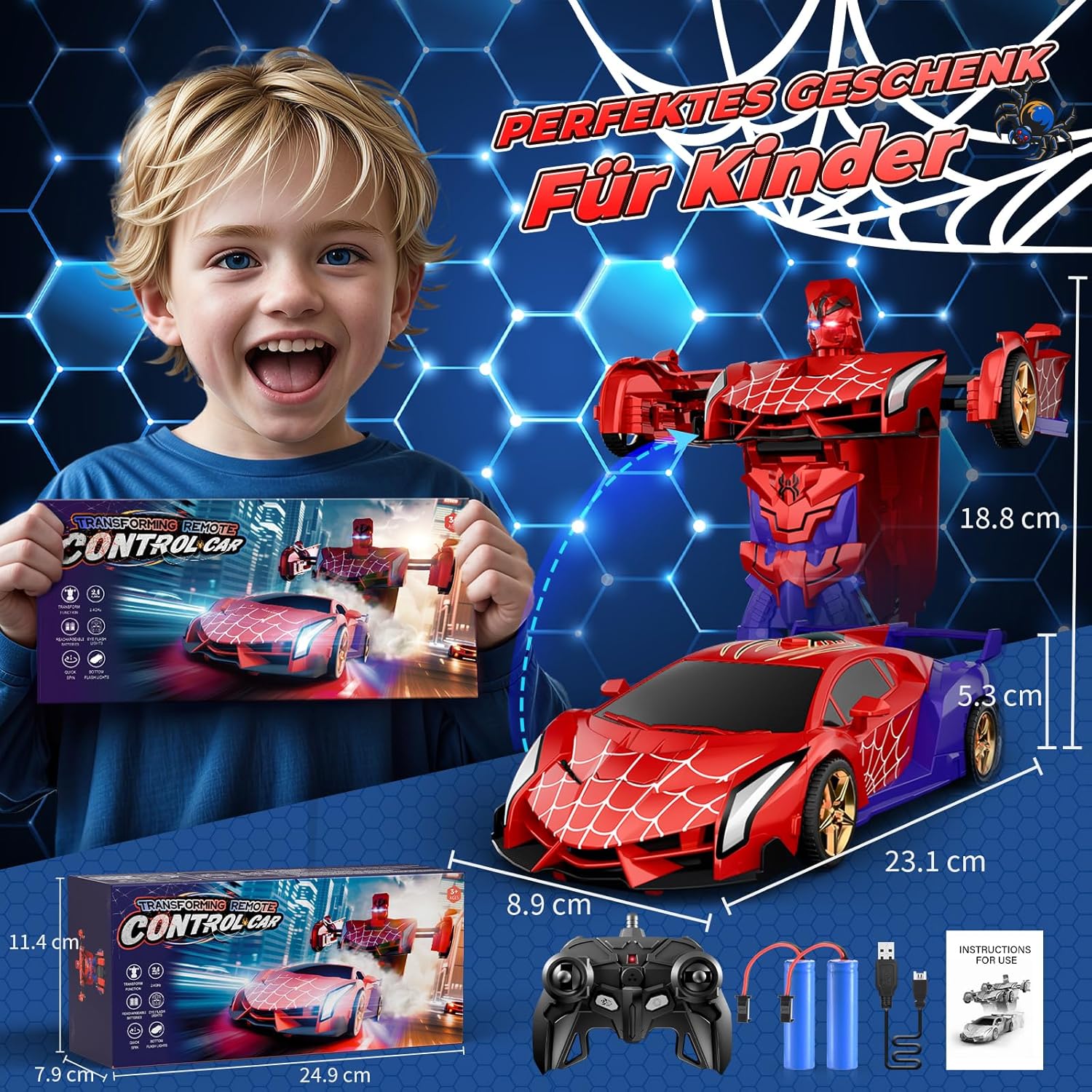 • 2 в 1 кола с дистанционно управление с дизайн паяк: Тази RC кола от 3 4 5 6 7 8 9 10 11 12 години осигурява двойно забавление от играта - само с едно натискане на бутон, тя се превръща от състезателна кола в робот. Идеална за деца, които обичат екшъна! Истински хит сред момчетата играчки 3 4 5 6 7 8 9 10 11 12 години.