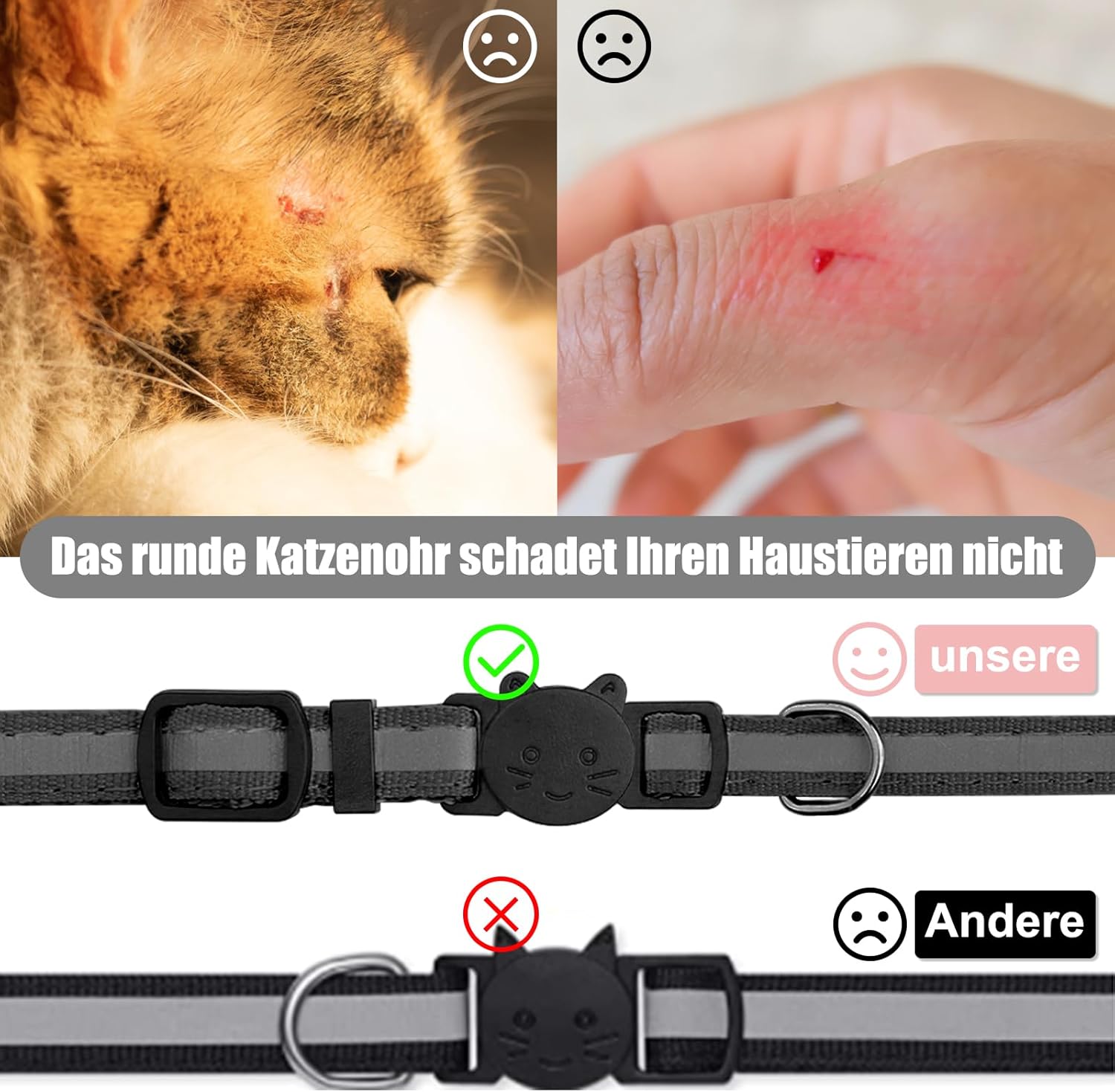 • Предпазна катарама: в случай на опасност, предпазната ключалка се освобождава бързо, напр. B. Когато котка заклещи чуждо тяло във врата си, предпазната ключалка се освобождава бързо, за да се гарантира безопасността на котката.