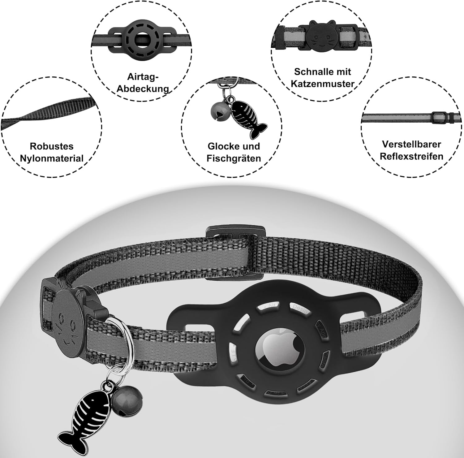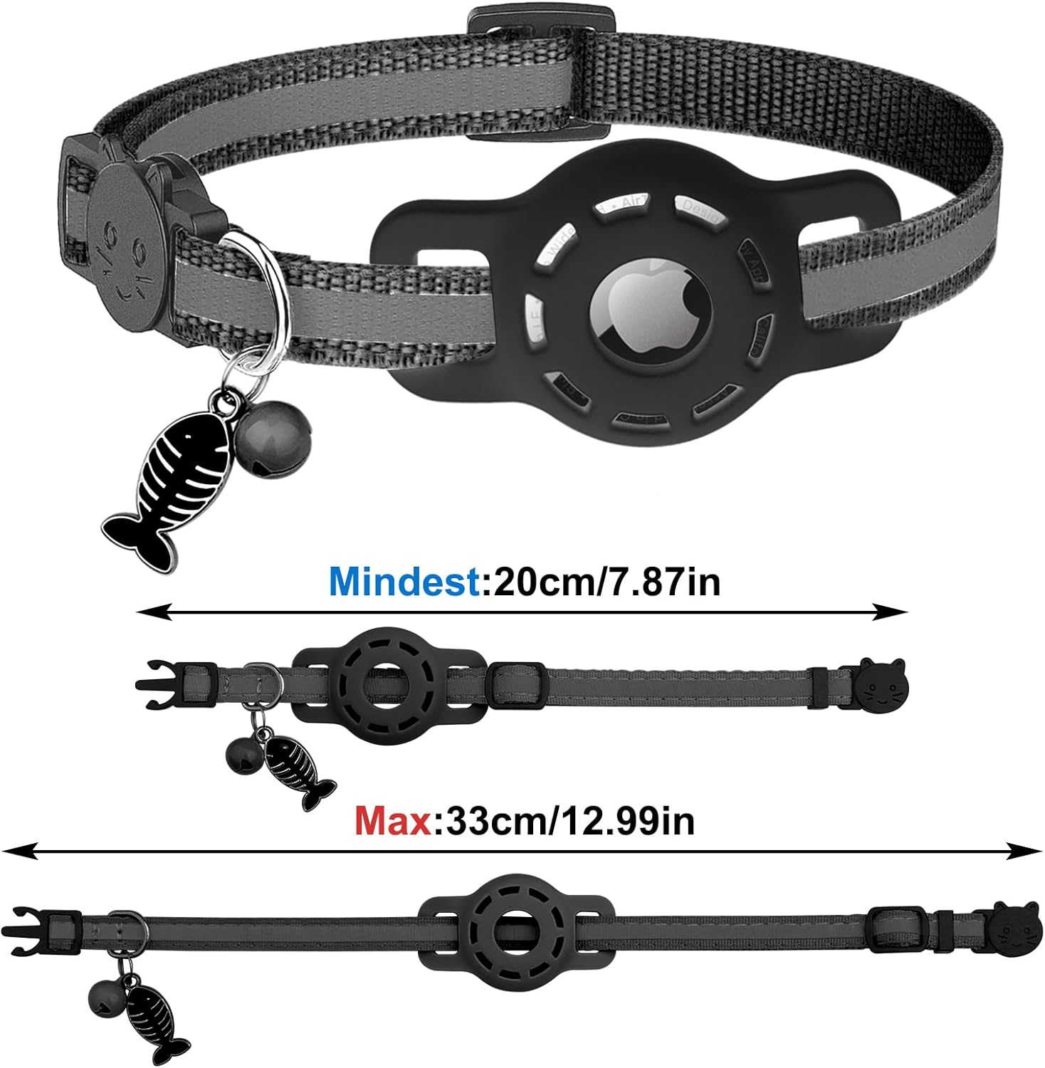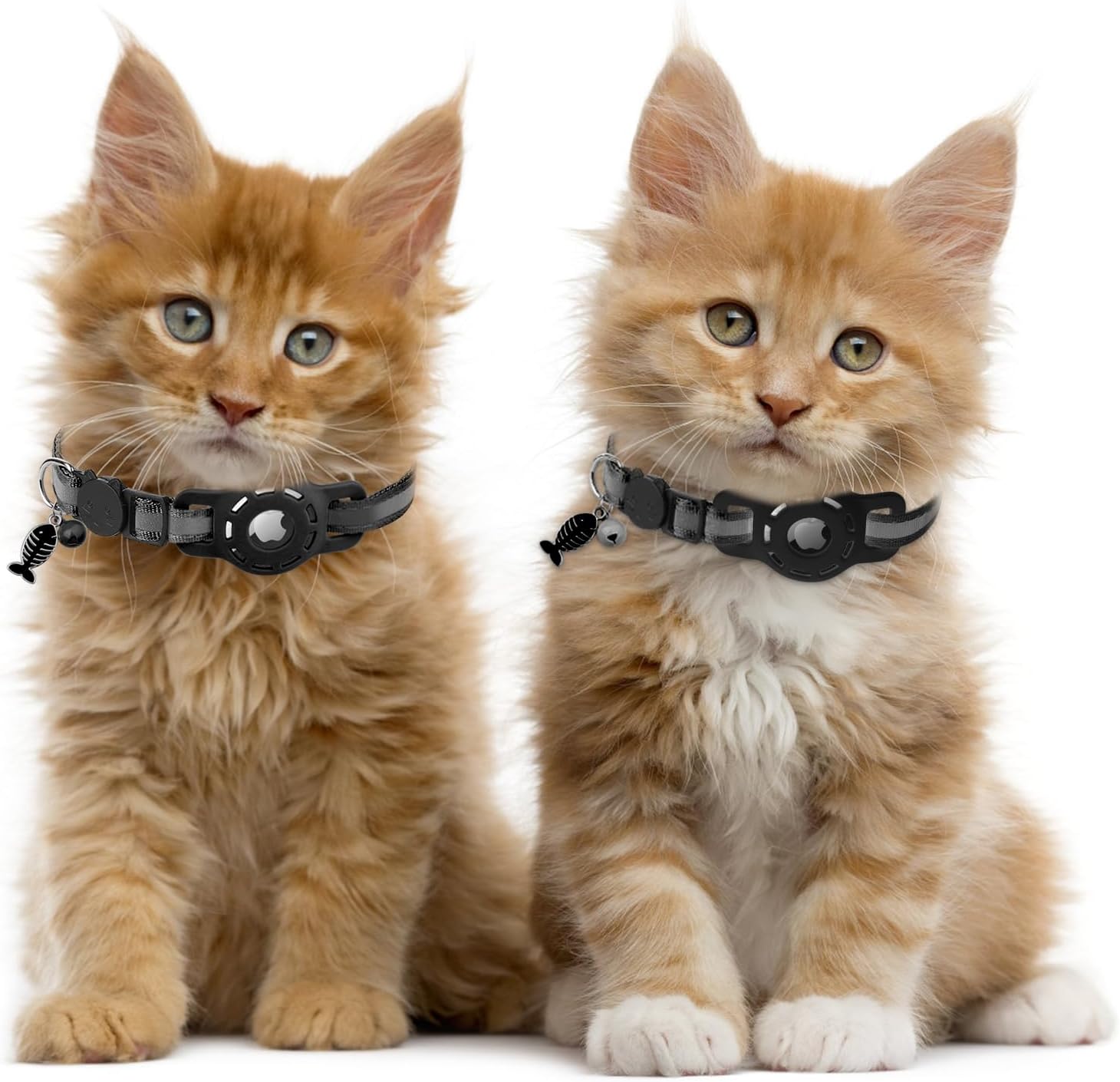 Нашийник за котки, съвместим с Airtag, [Пакет от 2] Светлоотразителни GPS леки нашийници за котки с калъф за Airtag, бързо освобождаване, звънец, 20-33 см регулируеми за котки и котенца, черни