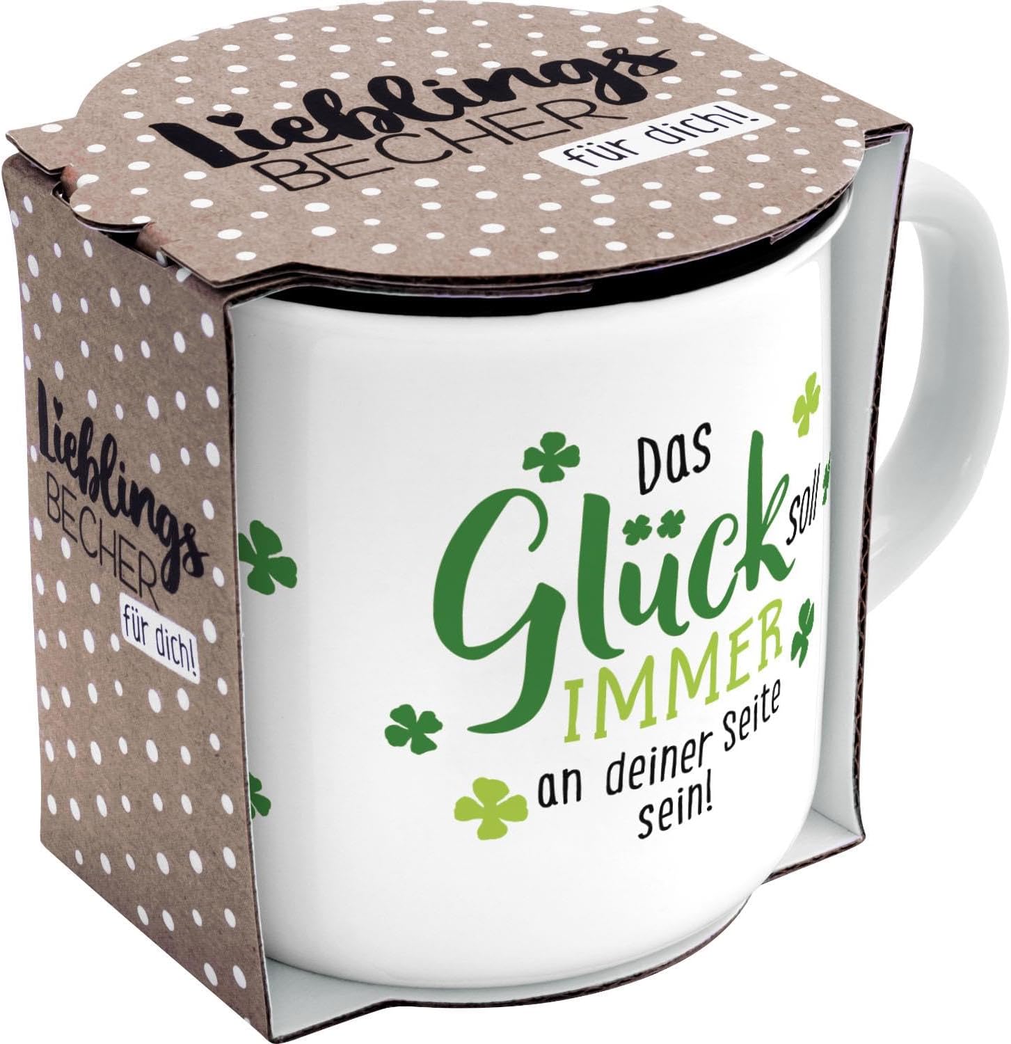 Дизайн на чаша GRUSS & CO "Късмет" | Нов костен порцелан, емайлиран вид, 35 cl | Забавен подарък, талисман за късмет | 73931