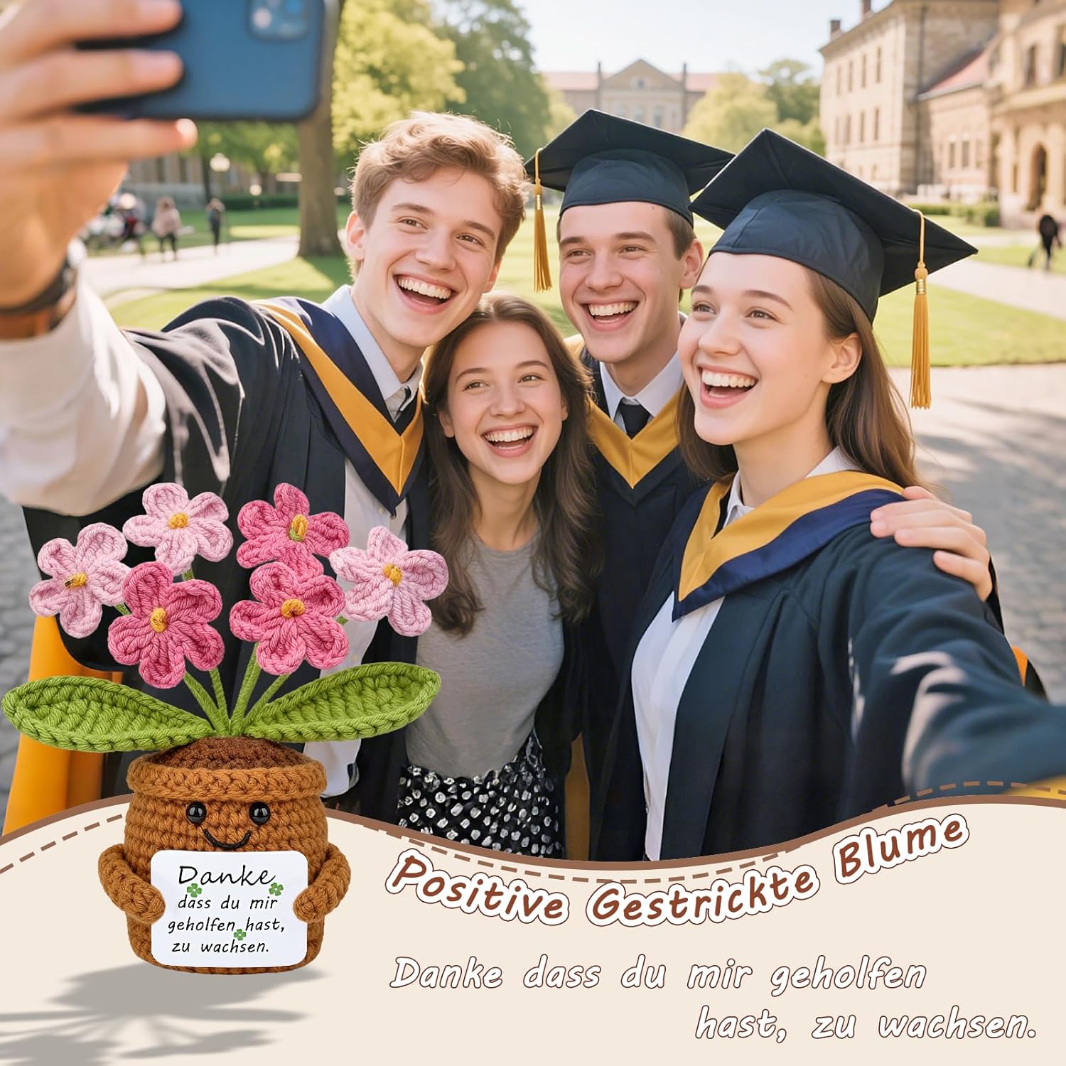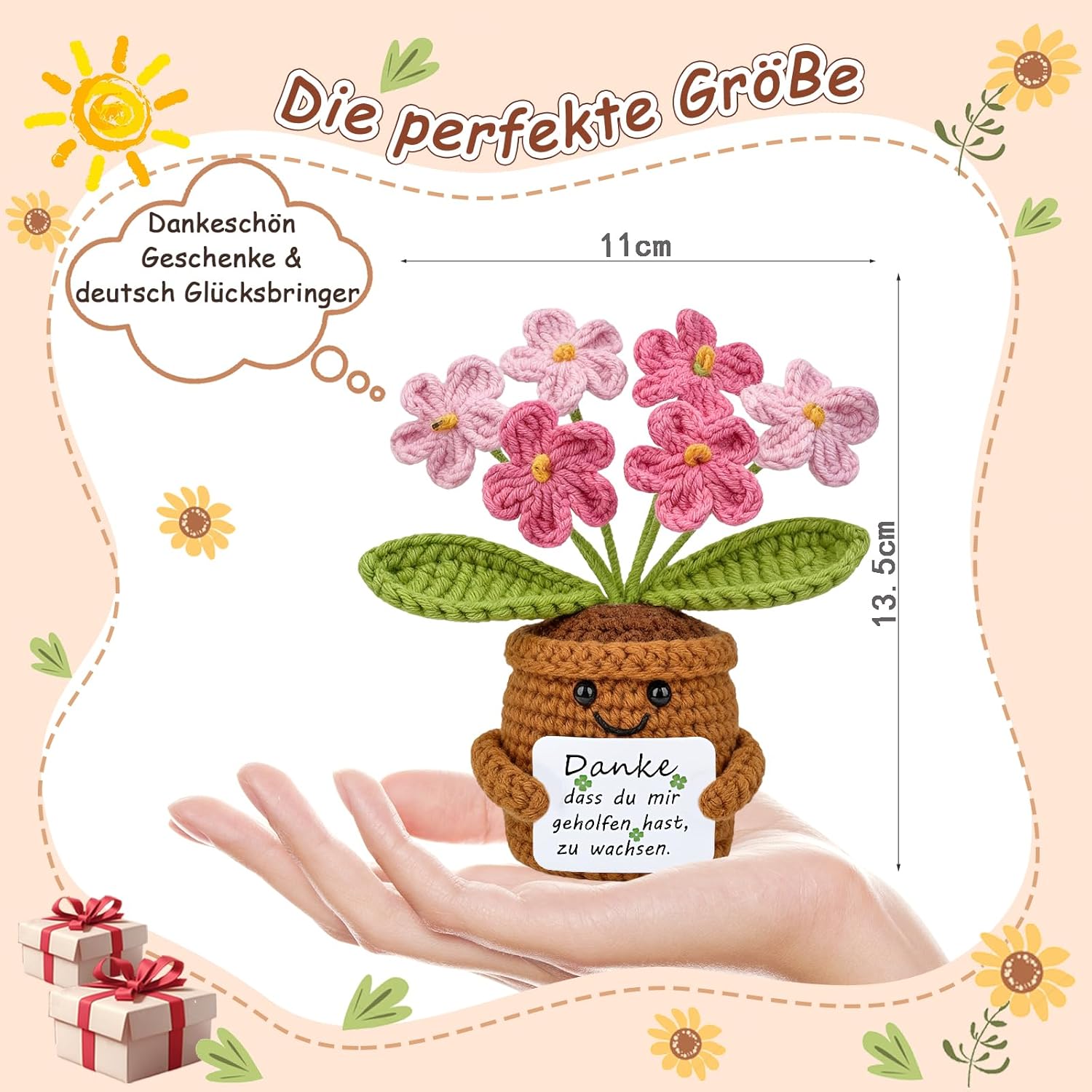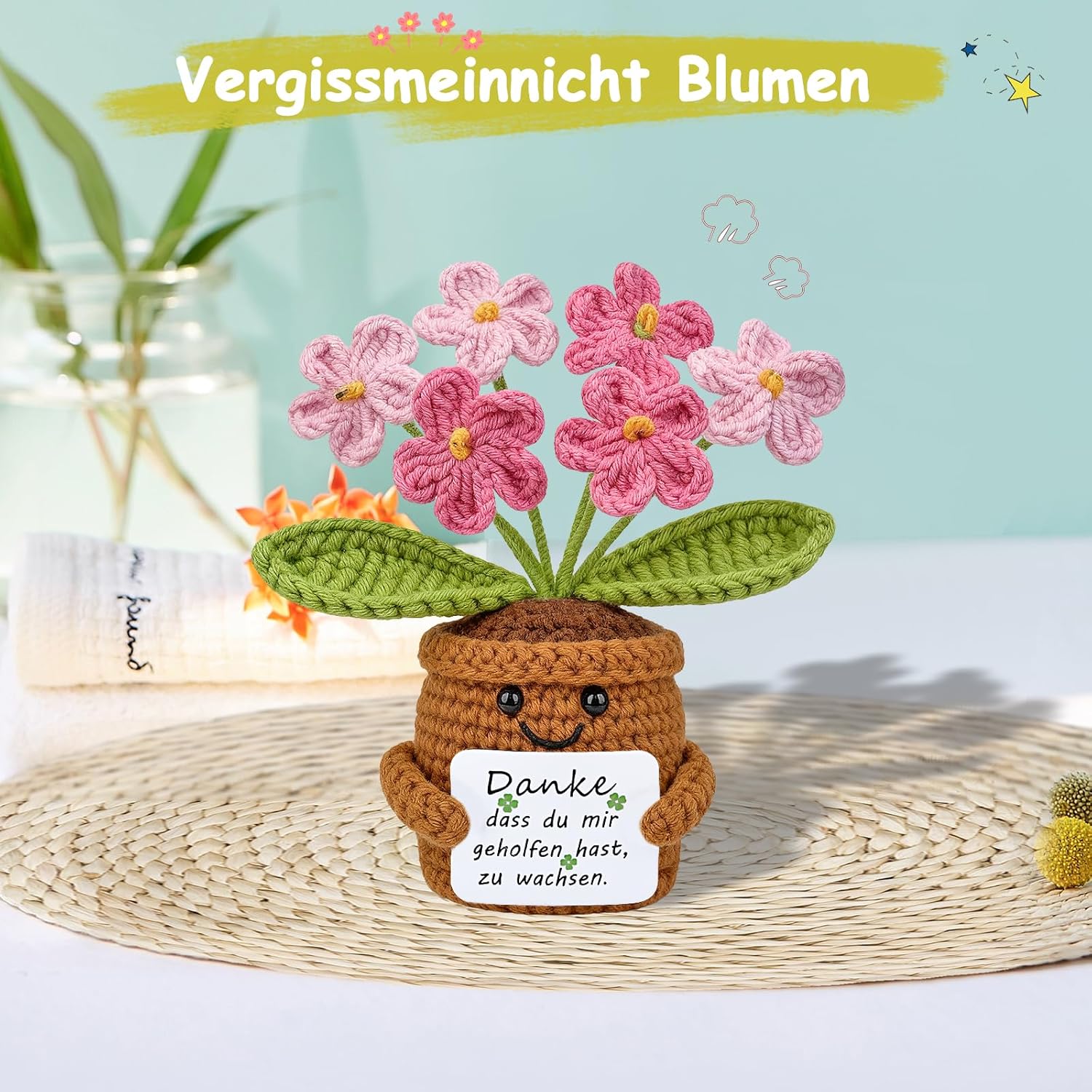 • Ръчно плетено цвете: всяко забавно плетено изделие е внимателно ръчно изработено, меко и удобно на допир, с деликатна изработка, без деформации при натиск. Това е красив и искрен подарък за благодарност за учители. Това цвете със сигурност ще ви накара да се усмихнете широко.