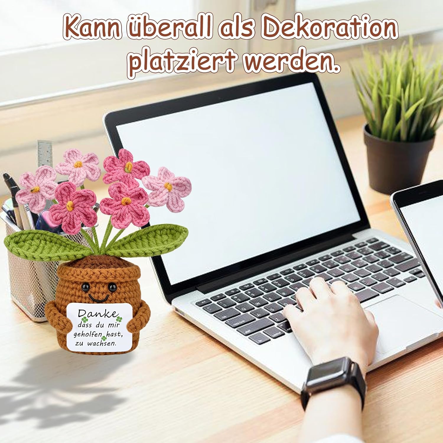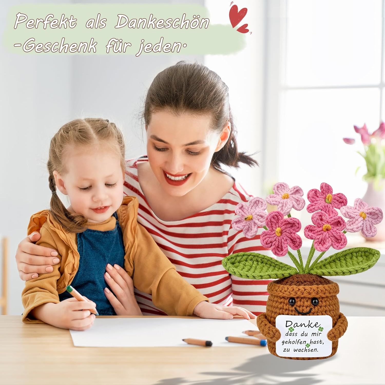 • Креативни декорации: това ръчно изработено плетено цвете е очарователна декорация за бюрото на учителя, класната стая, офиса или дома, добавяйки нотка сладост. Идеално за многостранна декорация в домове, офиси или рафтове, то вдъхва топлина и веселие във всяка стая. Перфектен подарък за признание от ученика към учителя.