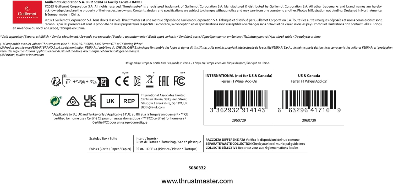 · Removable racing handlebars with the "Thrustmaster Quick Release" system - fast from the T500 RS*, T300 RS*, T300 Ferrari GTE* & TX racing wheel*. switch to the F1 Ferrari* steering wheel (and vice versa).