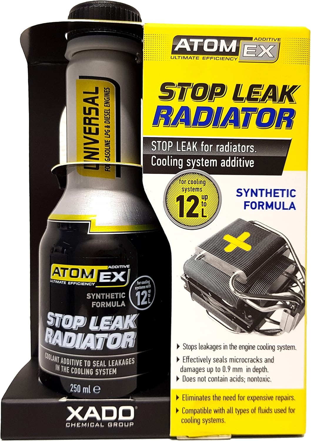 Спира малки течове в охладителната система на двигателя. Надеждно запечатва пукнатини и повреди до 0,9 мм. Помага да се избегнат скъпи ремонти. Защитава охладителната система трайно от корозия и ръжда. Не съдържа киселини, безвреден е за материалите на охладителната система (салникови муфи, гумени маркучи, радиатори от алуминий, пластмаса и стомана).