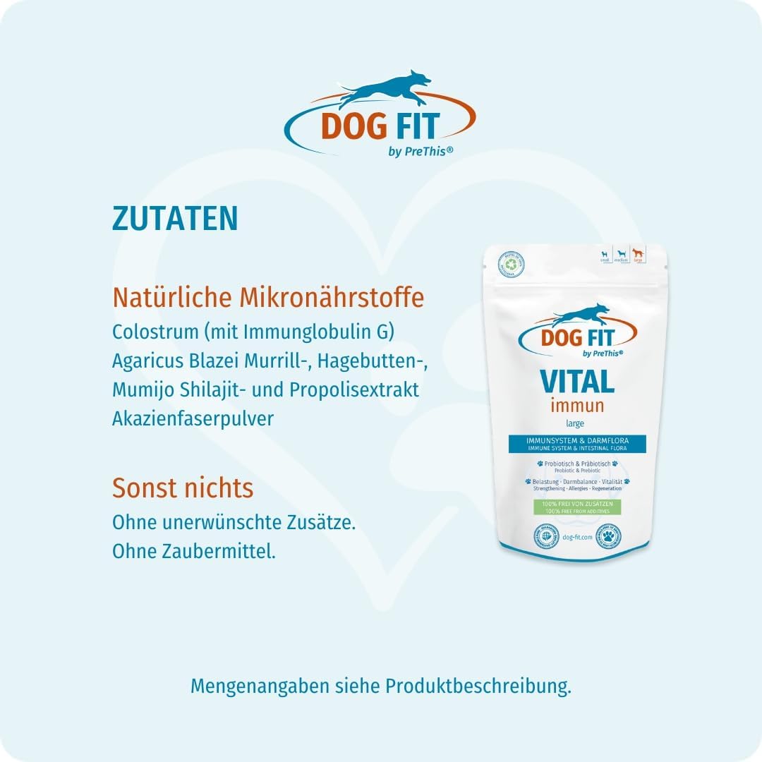 Акациеви фибри 200 мг, говежди коластра (30% имуноглобулин G - IgG) 167 мг, екстракт от Agaricus blazei Murill (30% полизахариди) 50 мг, екстракт от шипка 32 мг, екстракт от мумио (50% фулвинова киселина) 25 мг, екстракт от прополис 10 мг, целулозна капсула. Суров протеин 47,0%, сурова пепел 11,5%, сурови фибри 9,8%, сурови мазнини 2,7%