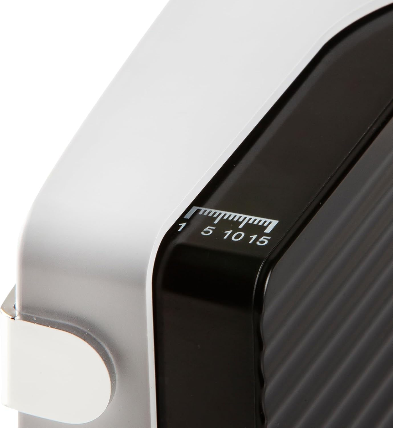 Индивидуално регулируема дебелина на рязанеБлагодарение на безстепенното регулиране от 1 до 15 мм, можете да режете както тънки филийки, така и дебели парчета с тази машина за хляб с регулируема дебелина на рязане. Включеният държач за остатъци осигурява равномерни резултати - идеален за ежедневна употреба като машина за рязане на шунка или наденица.