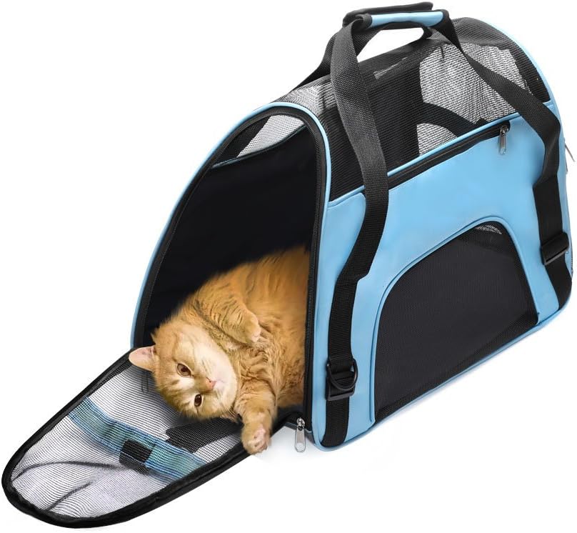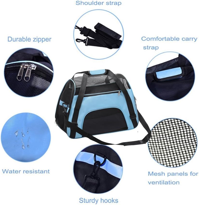 DONYER POWER Чанта за носене под седалка с меки страни за кучета и котки, удобна, одобрена от авиокомпания, раница, чанта за пътуване за малки животни с мрежест плот и страни, синя