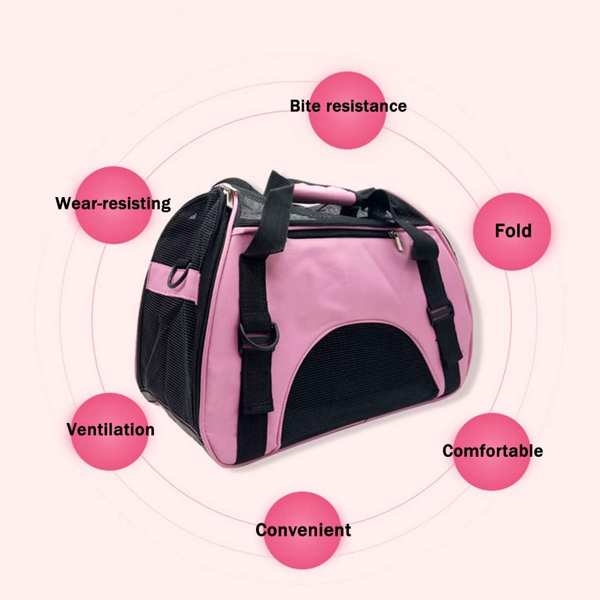 • Благодарение на заключването на предпазния колан, чантата може да се прикрепи към предпазния колан на автомобила. Тази кутия за домашни любимци е изработена от издръжлив, лек, водоустойчив найлон и мрежест материал.