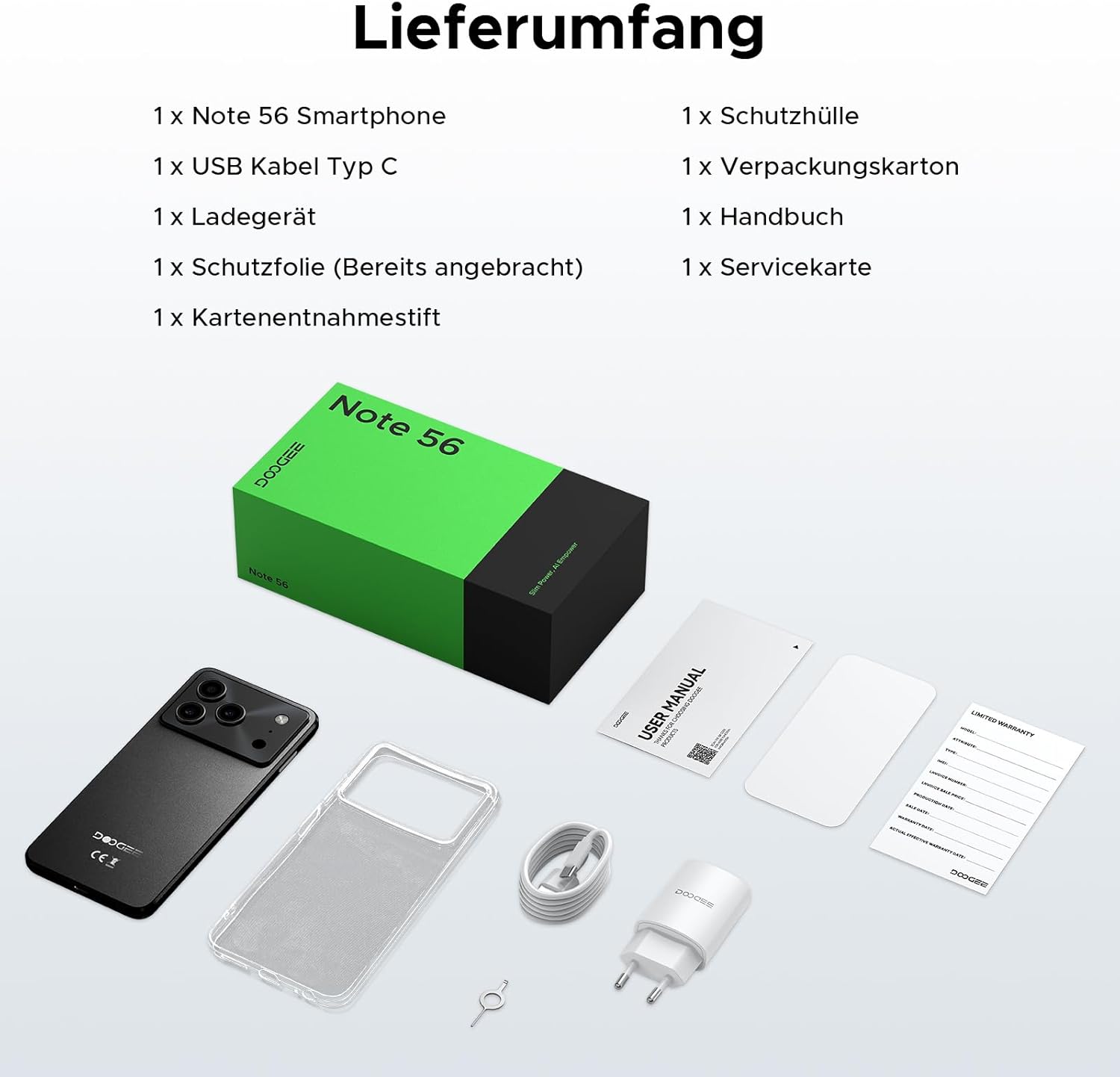 • Face ID + GPS + OTG: Смартфонът DOOGEE Note 56 с Android 16 без договор поддържа Face ID, което позволява бързо отключване на телефона, има OTG функция, поддържа 5W обратно зареждане, може да се използва като аварийно захранване за други устройства, има 3,5 мм жак за слушалки и същевременно поддържа евтин мобилен телефон DOOGEE Note 56 с Android 16 GPS, GLONASS, Galileo навигация. findfindfindfind, Note 56 Мобилните телефони без Simlock са добър спътник за ежедневна употреба.