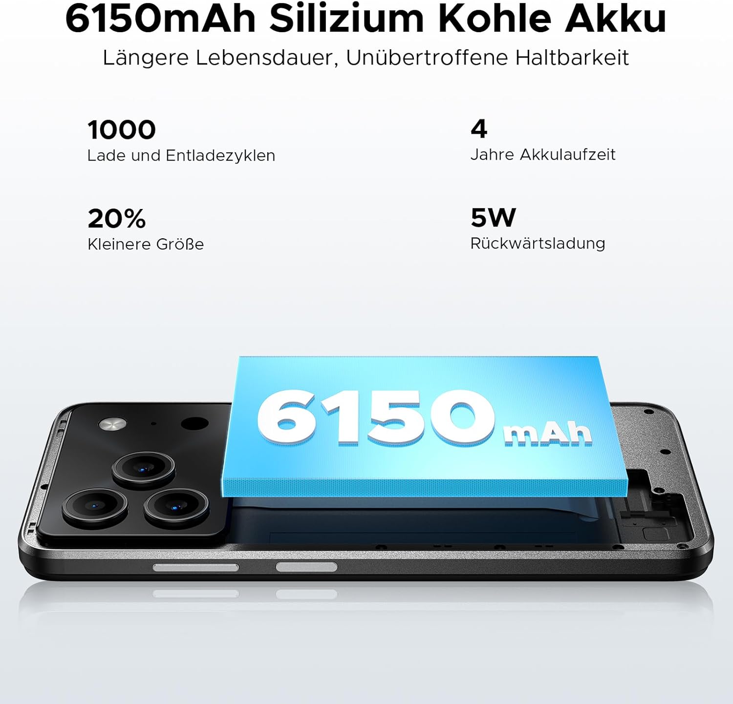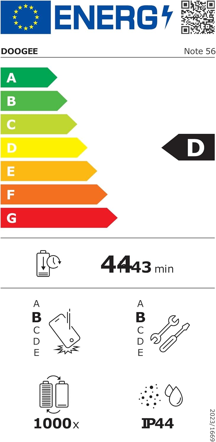 • Голяма батерия с капацитет 6150 mAh + 10 W бързо зареждане: Смартфонът DOOGEE Note 56 с Android 16 има голяма батерия с капацитет 6150 mAh, изработена от отрицателни силициеви клетки, която осигурява бърза скорост на зареждане, по-дълъг живот на батерията, силна структурна стабилност и висока безопасност, като запазва по-голямата част от мощността дори при ниски температури. В същото време мобилният телефон е оборудван с бързо зареждане с мощност 10 W, което допълнително подобрява скоростта на зареждане.