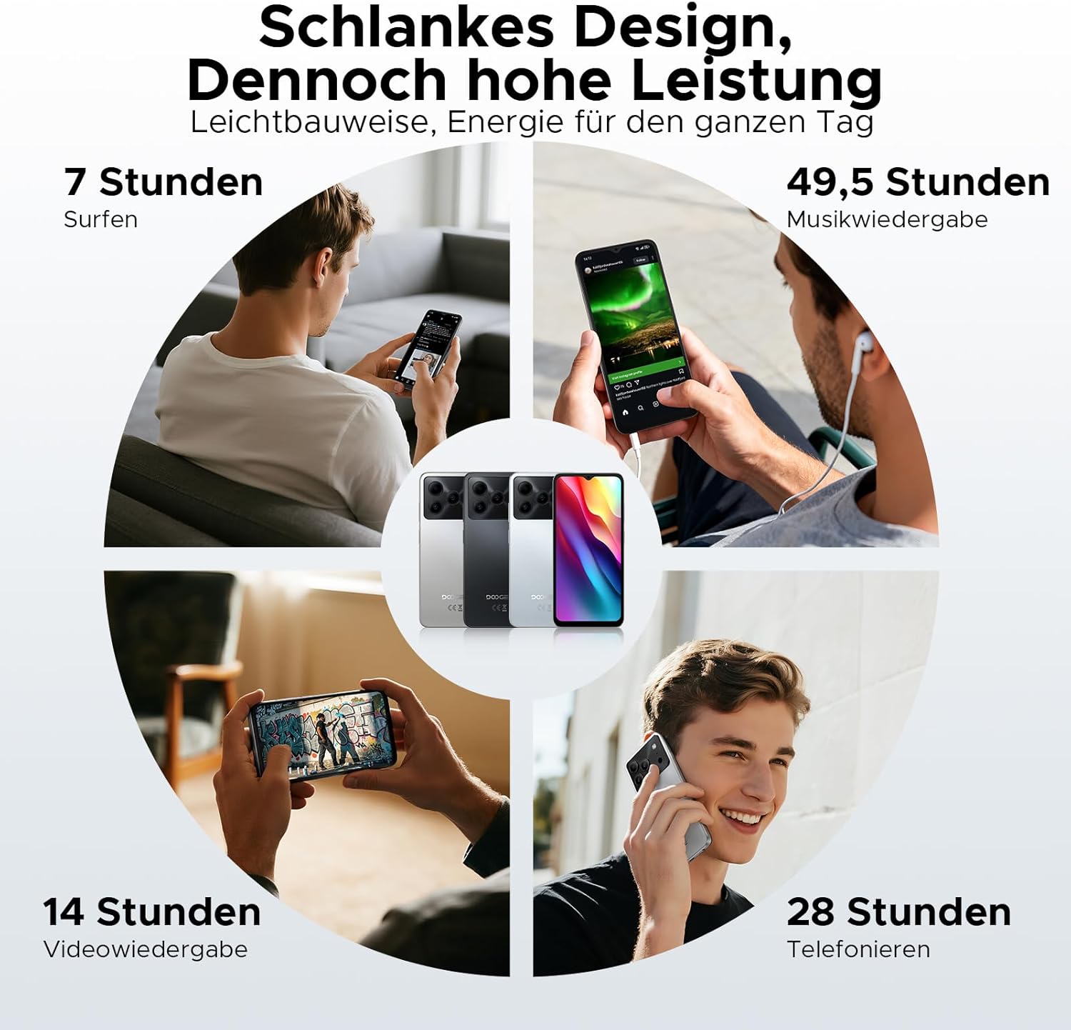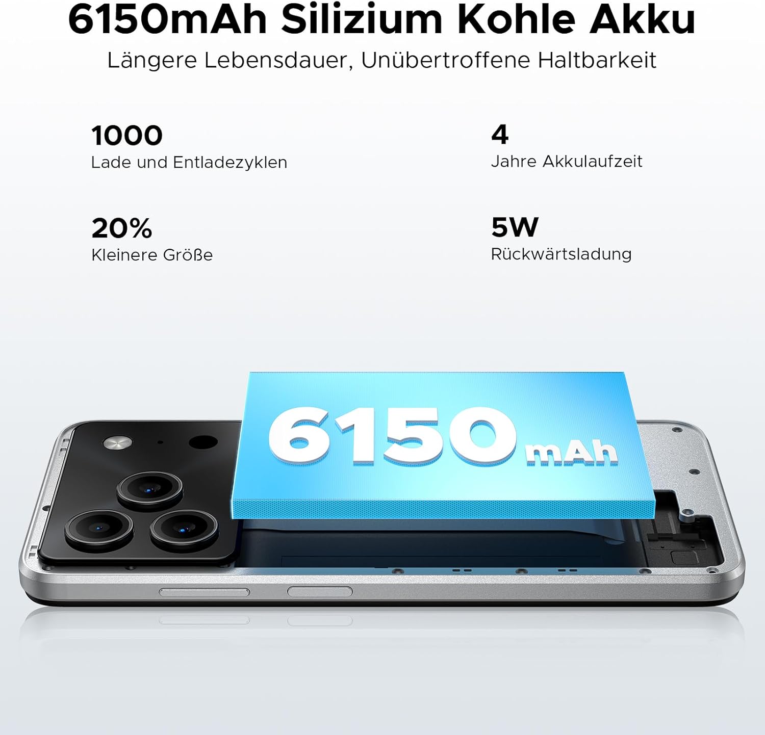 • Голяма батерия с капацитет 6150 mAh + 10 W бързо зареждане: Смартфонът DOOGEE Note 56 с Android 16 има голяма батерия с капацитет 6150 mAh, изработена от отрицателни силициеви клетки, която осигурява бърза скорост на зареждане, по-дълъг живот на батерията, силна структурна стабилност и висока безопасност, като запазва по-голямата част от мощността дори при ниски температури. В същото време мобилният телефон е оборудван с бързо зареждане с мощност 10 W, което допълнително подобрява скоростта на зареждане.