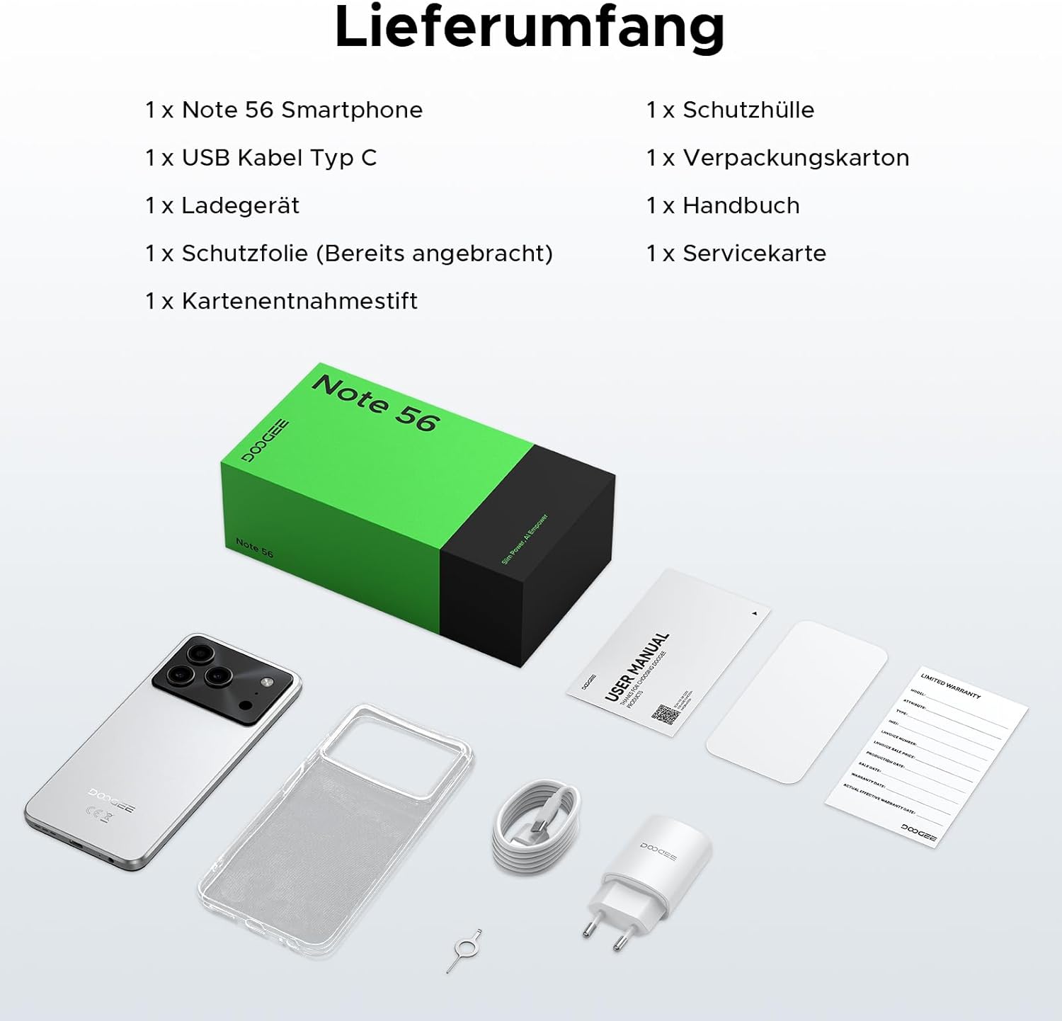 • Face ID + GPS + OTG: Смартфонът DOOGEE Note 56 с Android 16 без договор поддържа Face ID, което позволява бързо отключване на телефона, има OTG функция, поддържа 5W обратно зареждане, може да се използва като аварийно захранване за други устройства, има 3,5 мм жак за слушалки и същевременно поддържа евтин мобилен телефон DOOGEE Note 56 с Android 16 GPS, GLONASS, Galileo навигация. findfindfindfind, Note 56 Мобилните телефони без Simlock са добър спътник за ежедневна употреба.