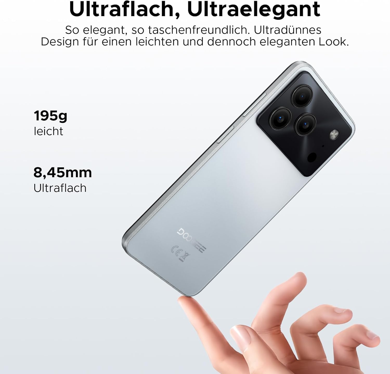 • 8,45 мм ултратънък + 6,56 инча HD + 90 Hz: Смартфонът DOOGEE Note 56 Android 16 има ултратънък корпус от 8,45 мм и тежи 195 г. Това го прави лек и лесен за носене. Екранът е 6,56" HD широк и стои удобно в ръката. Достъпният мобилен телефон DOOGEE Android 16 също има висока честота на опресняване от 90 Hz, което осигурява ясен и ярък екран с плавни, динамични изображения и по този начин намалява зрителната умора.