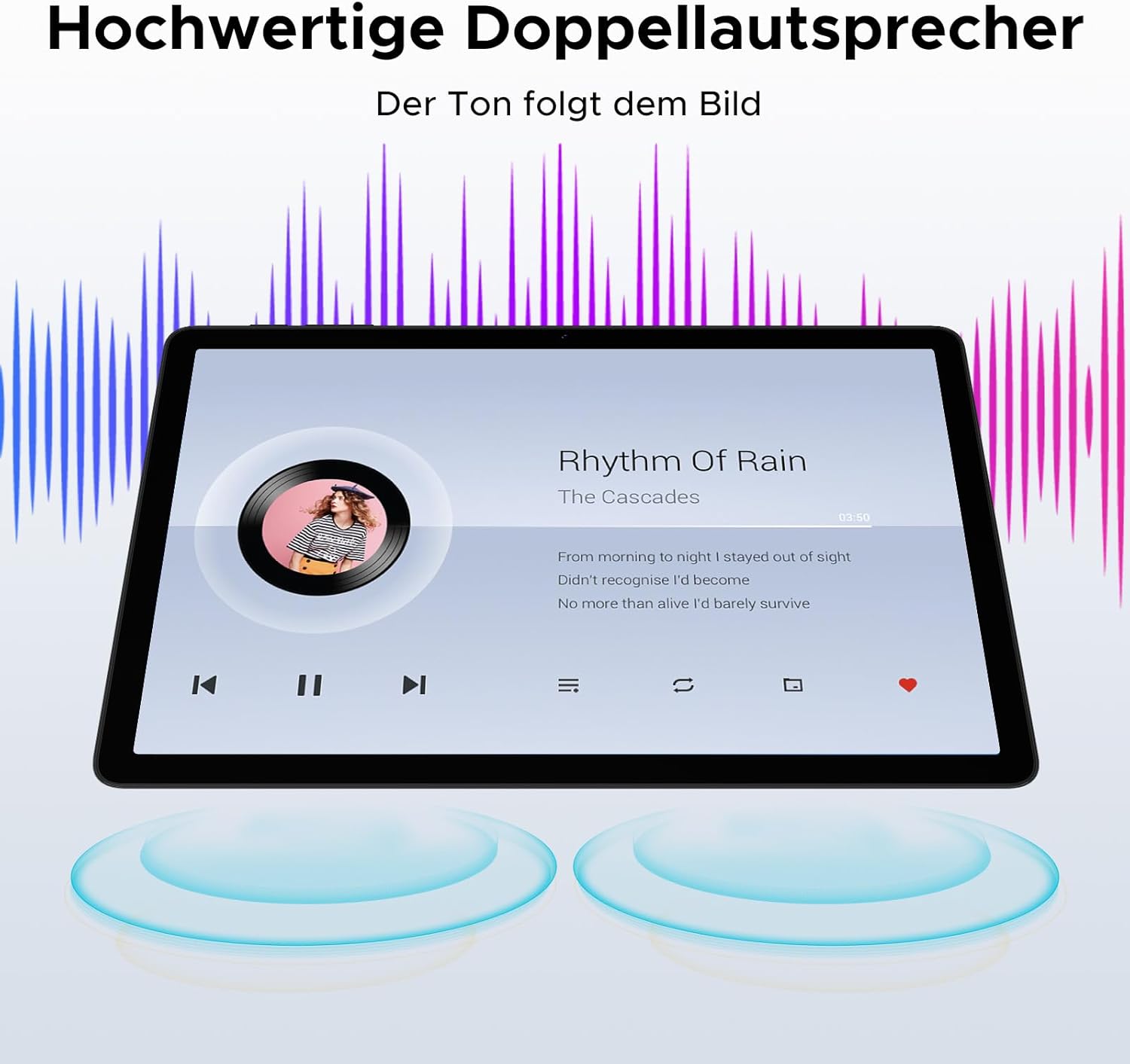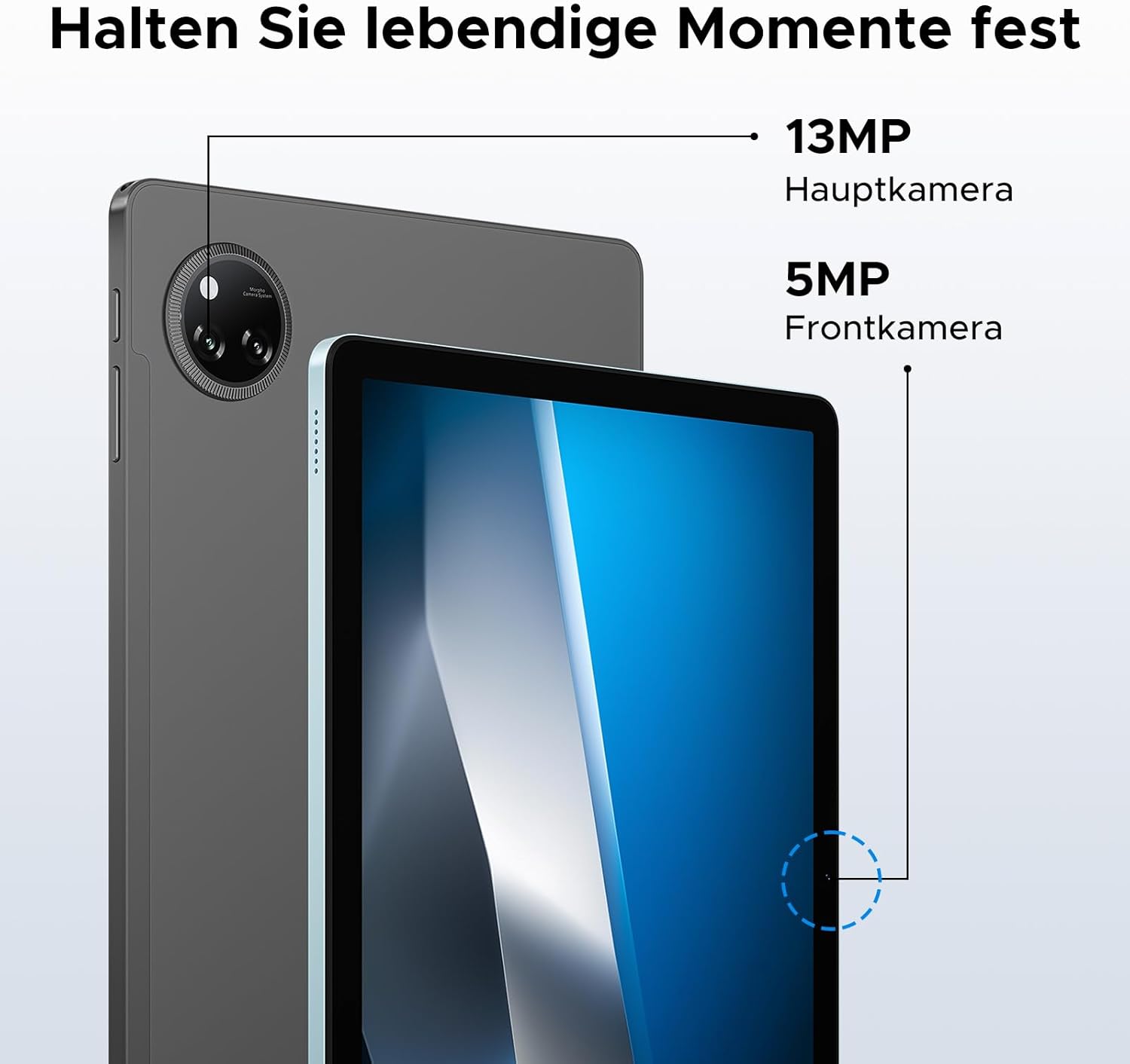 • 13 MP + 5 MP + двойни високоговорители + GPS: 11-инчовият таблет DOOGEE Tab A9+ е оборудван с 13 MP основна камера на гърба и 5 MP предна камера, за да заснеме ясно всеки красив момент и да запише най-красивите моменти. Двойните високоговорители осигуряват по-добро качество на живот, а 3,5 мм жак за слушалки осигурява допълнително удобство. По-бърз, по-безопасен и по-интуитивен, този таблет е идеален за работа, учене и свободно време.