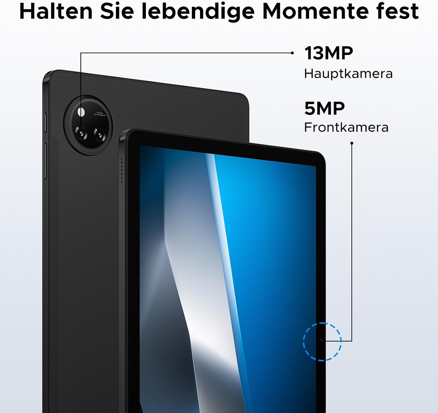 • 13 MP + 5 MP + двойни високоговорители + GPS: 11-инчовият таблет DOOGEE Tab A9+ е оборудван с 13 MP основна камера на гърба и 5 MP предна камера, за да заснеме ясно всеки красив момент и да запише най-красивите моменти. Двойните високоговорители осигуряват по-добро качество на живот, а 3,5 мм жак за слушалки осигурява допълнително удобство. По-бърз, по-безопасен и по-интуитивен, този таблет е идеален за работа, учене и свободно време.
