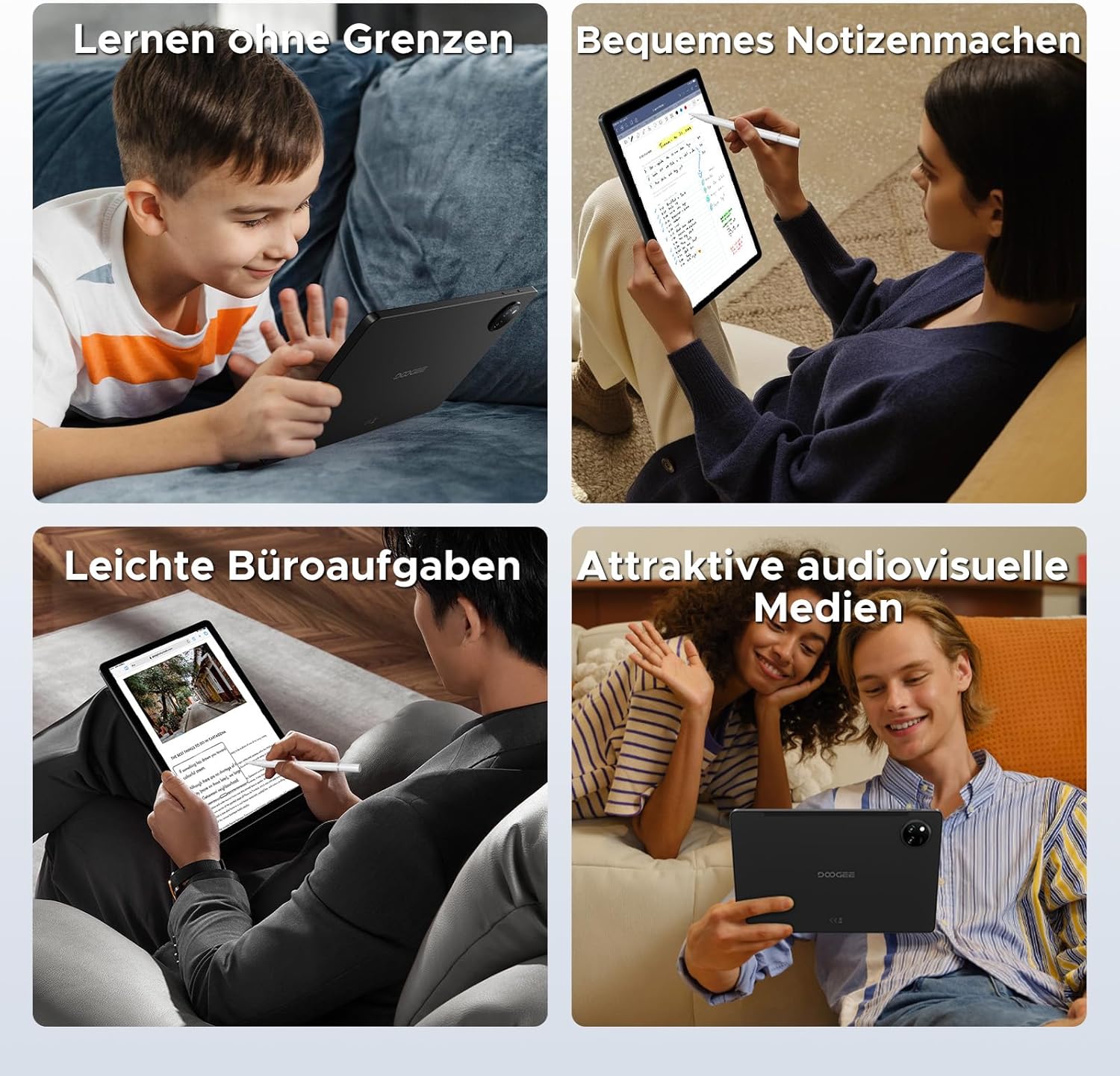 • All-in-one accessories: The DOOGEE DOOGEE Tab A9+ Android 15 tablet with keyboard has an excellent custom user interface, compatibility and operating efficiency, so you can work and play intelligently and use everyday applications easier. Accessories list: tablet, Bluetooth keyboard, mouse, tablet case, charger, Type-C charging cable, pen, screen protector.