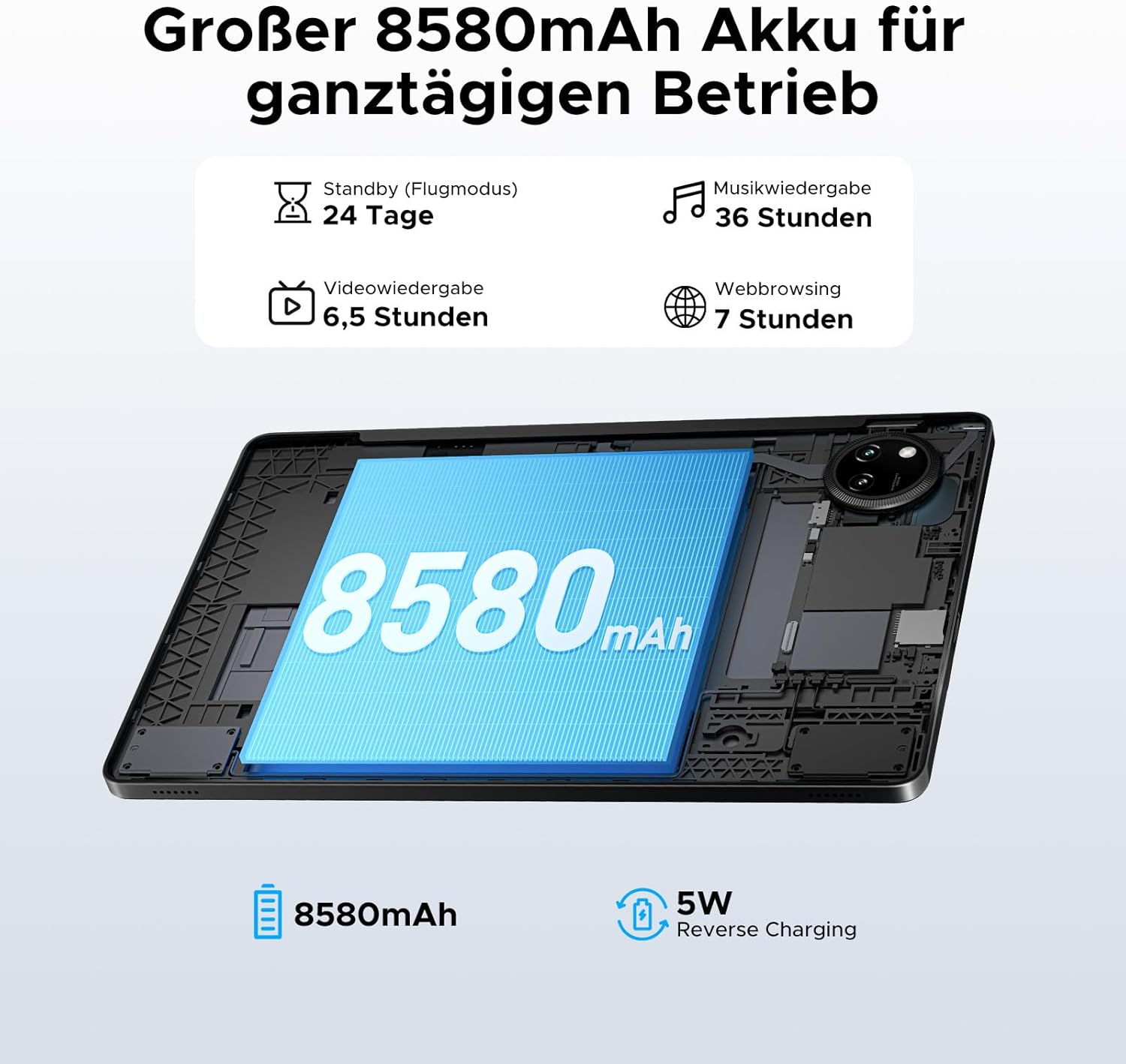 • 8580 mAh голяма батерия + OTG: Таблетът DOOGEE Tab A9+ Android 15 е оборудван с мощна батерия от 8580 mAh, която лесно издържа цял работен или гейминг ден. В допълнение, Tab A9+ поддържа Android 15 10-инчов таблет с OTG и поддържа 5W обратно зареждане, така че можете бързо да зареждате мобилния си телефон и компютър по всяко време и навсякъде. Геймърският таблет DOOGEE Tab A9+ е оборудван с две камери, които са удобни за ежедневно фотосесии и видео разговори.