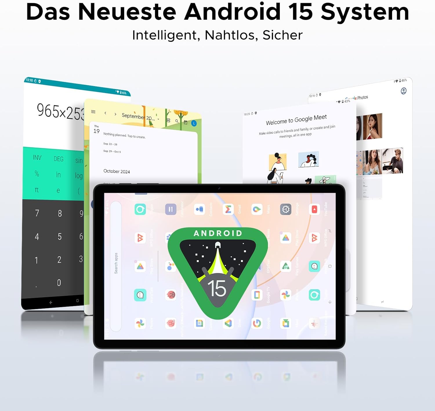• Най-новият Android 15 + Face ID (2025): Таблетът DOOGEE TAB A9+ Fire е оборудван с най-новата система Android 15 и предлага Face ID, персонализируема повърхност за заключване, разширено управление на разрешенията и функции за защита на данните, както и по-висока сигурност и стабилност на системата. Този Android таблет работи гладко и ви предлага безпроблемно изживяване. (Не се изисква SIM карта)