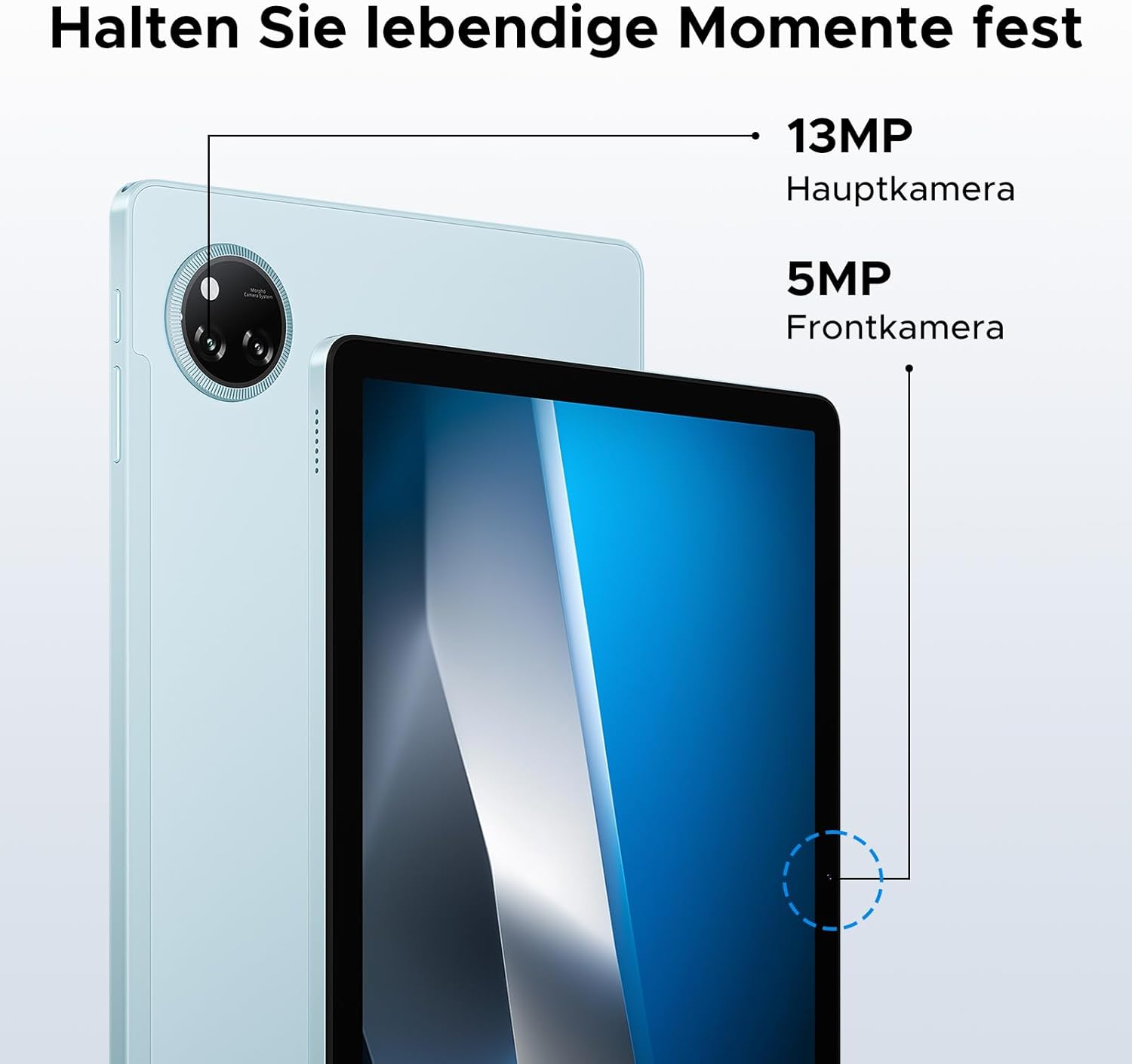 • 13 MP + 5 MP + двойни високоговорители + GPS: 11-инчовият таблет DOOGEE Tab A9+ е оборудван с 13 MP основна камера на гърба и 5 MP предна камера, за да заснеме ясно всеки красив момент и да запише най-красивите моменти. Двойните високоговорители осигуряват по-добро качество на живот, а 3,5 мм жак за слушалки осигурява допълнително удобство. По-бърз, по-безопасен и по-интуитивен, този таблет е идеален за работа, учене и свободно време.