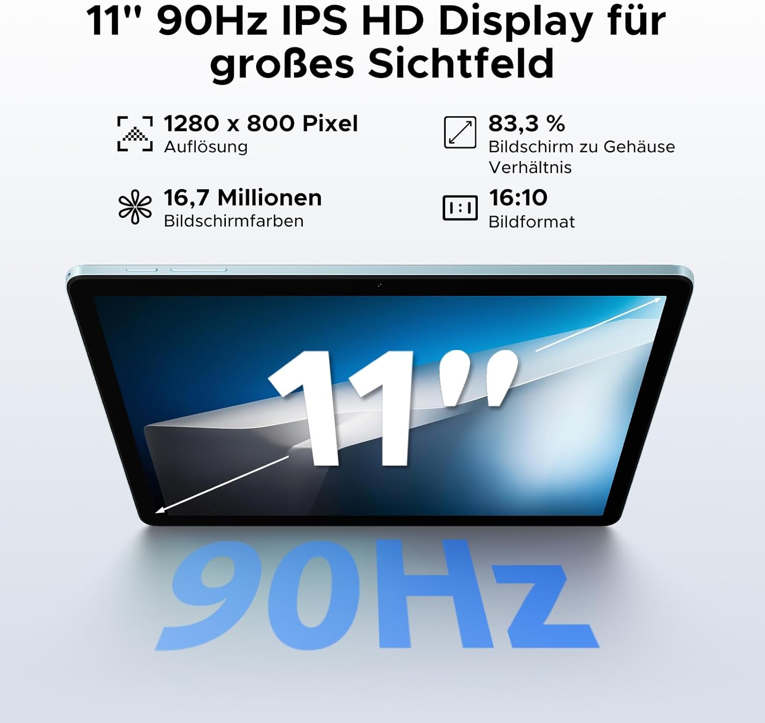 • 11-инчов HD IPS + 90 Hz + Widevine L1: DOOGEE Tab A9+ Android 15 таблет 11 инча предлага впечатляващ HD дисплей с резолюция 1280 x 800 пиксела. IPS екранът предлага широк ъгъл на гледане, а дисплеят с висока резолюция 90Hz е цветен, идеален за гледане на филми, игри или сърфиране в интернет. DOOGEE Tab A9+ таблет 11 инча Android 15 също поддържа Widevine L1, така че можете да гледате Amazon Prime Video и Hulu видеоклипове по всяко време.