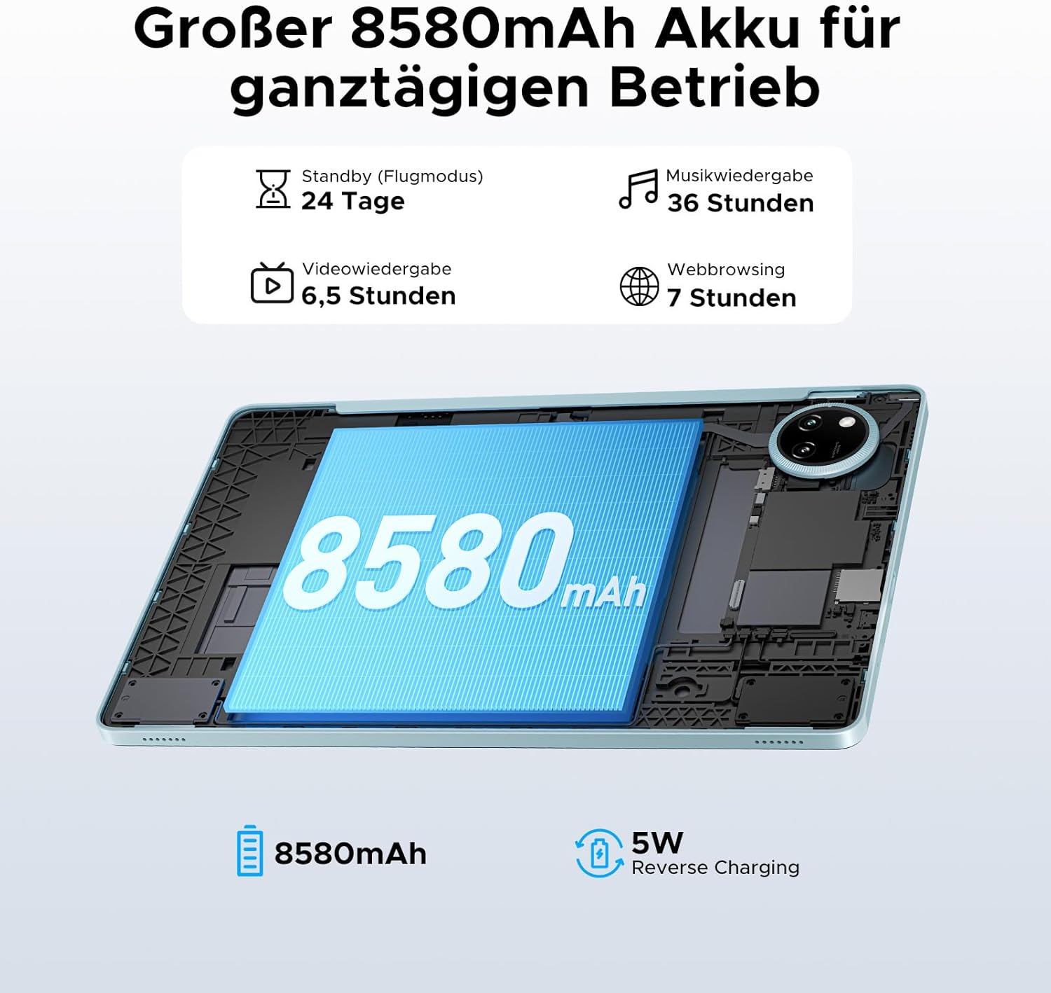 • 8580 mAh голяма батерия + OTG: Таблетът DOOGEE Tab A9+ Android 15 е оборудван с мощна батерия от 8580 mAh, която лесно издържа цял работен или гейминг ден. В допълнение, Tab A9+ поддържа Android 15 10-инчов таблет с OTG и поддържа 5W обратно зареждане, така че можете бързо да зареждате мобилния си телефон и компютър по всяко време и навсякъде. Геймърският таблет DOOGEE Tab A9+ е оборудван с две камери, които са удобни за ежедневно фотосесии и видео разговори.