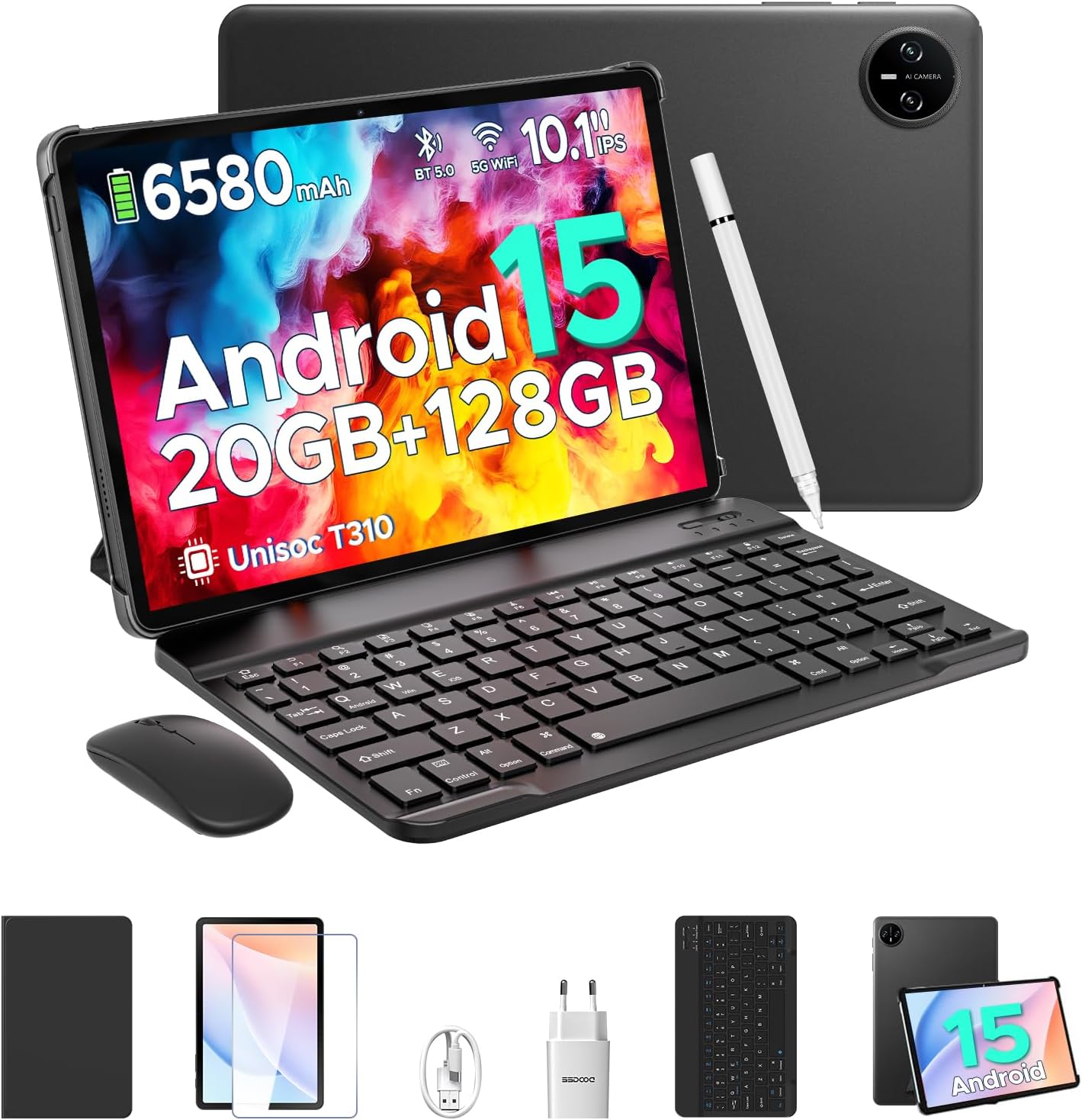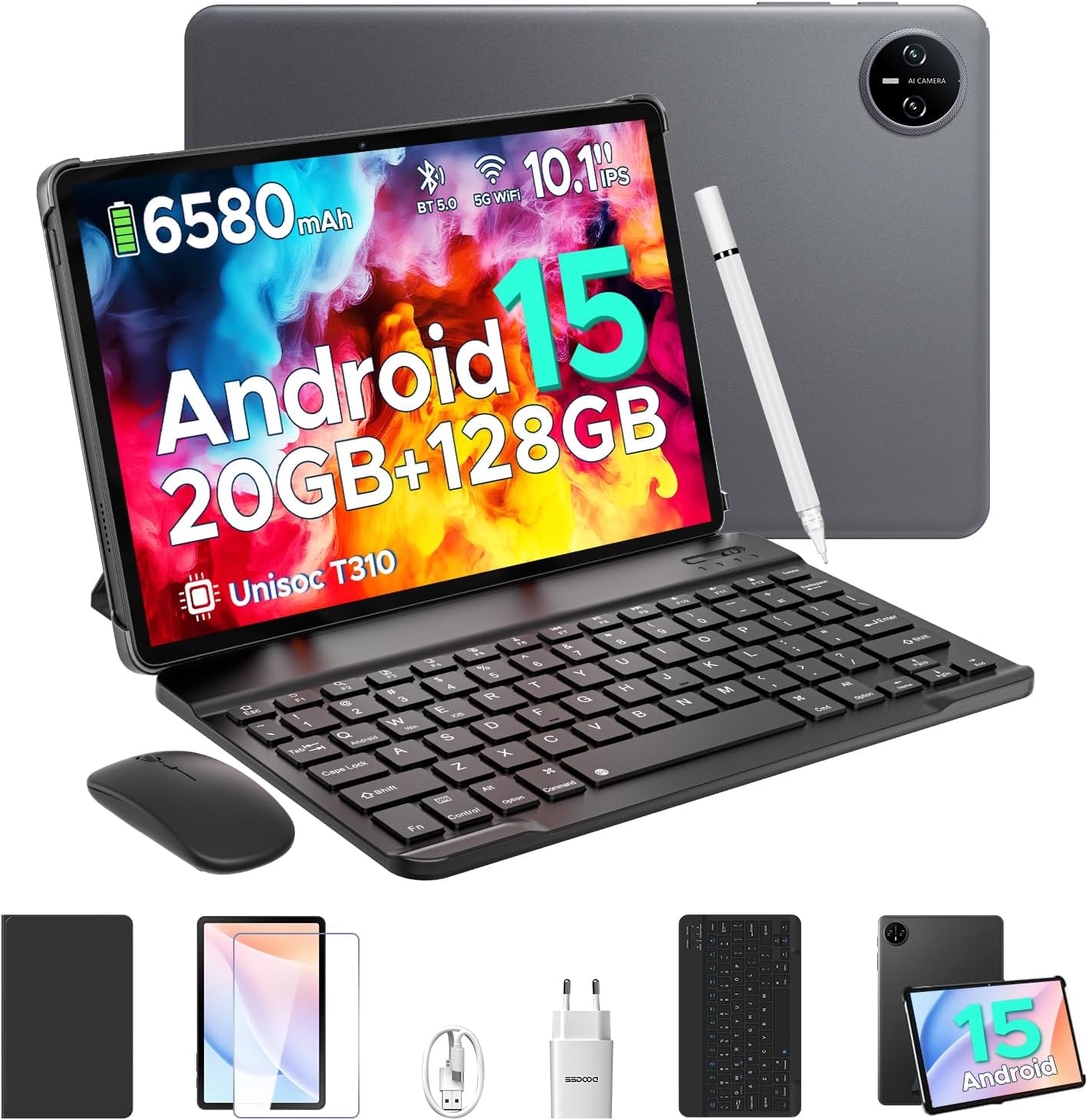 DOOGEE Tab A9 Pro Android 15 таблет 10 инча 20GB RAM + 128GB ROM (2TB TF) Unisoc T310 6580mAh 8MP + 5MP таблет с клавиатура, писалка, мишка, калъф, защитно фолио / Face ID / 5G WiFi / 3.5 мм слушалки