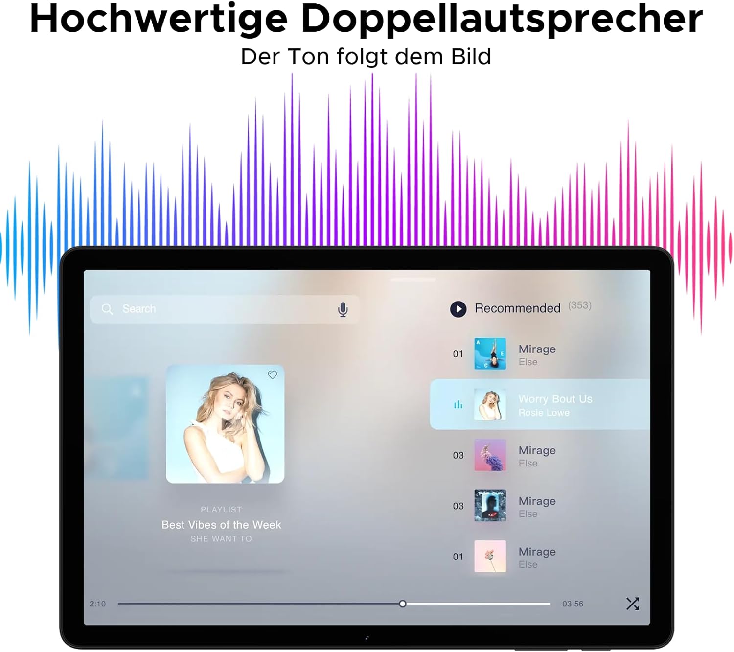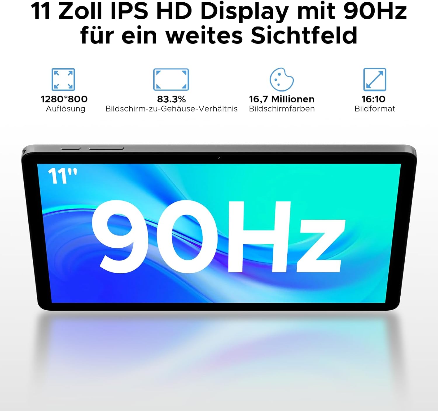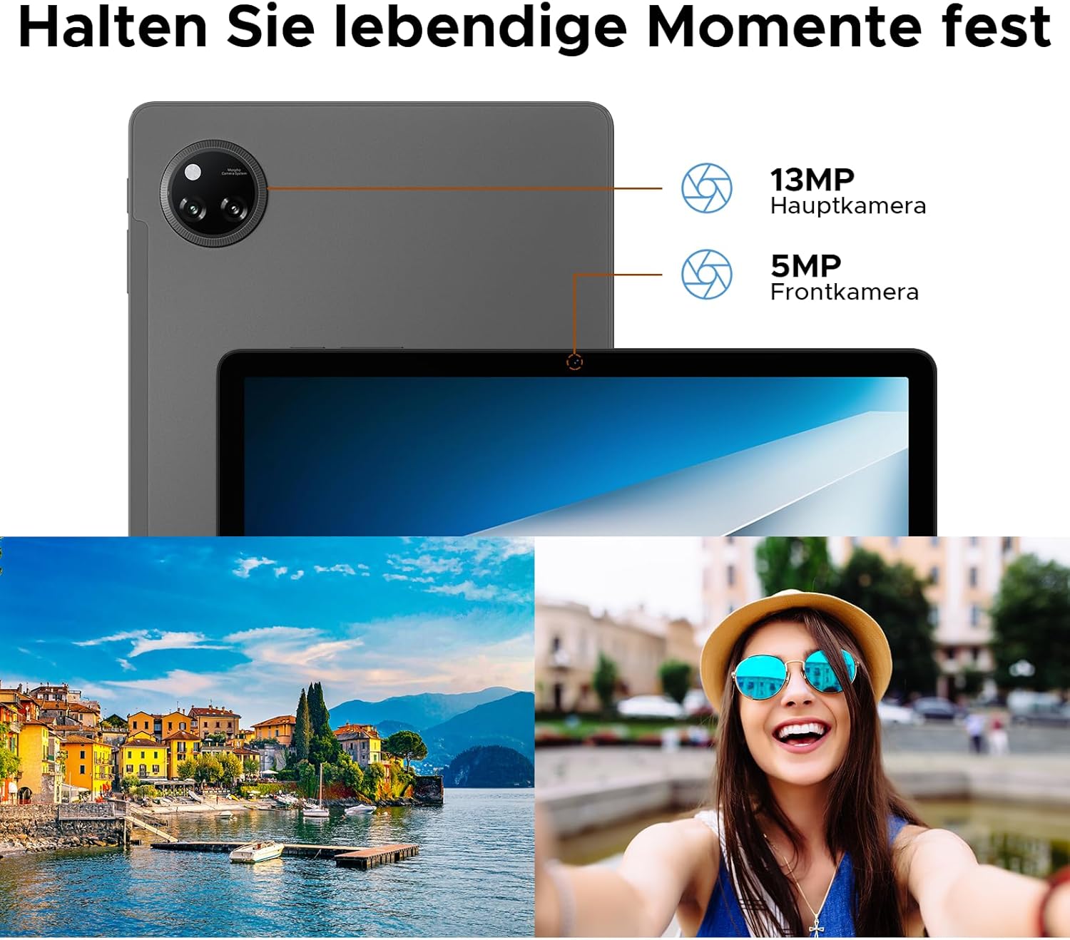 • ????️????️ Таблет 11-инчов екран + 13MP камера: DOOGEE таблет с клавиатура използва 11-инчов HD IPS екран за защита на очите, който може да намали вредната синя светлина и да облекчи умората на очите. Благодарение на високата резолюция от 1280*800 и контрола на ярката и чиста синя светлина, таблетът DOOGEE Tab A9 Pro+ предлага по-комфортно изживяване при гледане с естествено регулиране на яркостта. Оборудван с 5MP предна камера и 13MP задна камера, можете да заснемете и фотографирате най-хубавите си спомени.