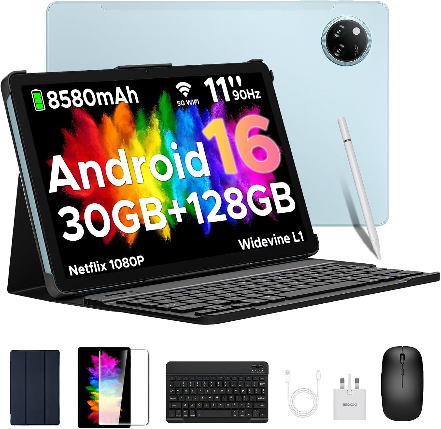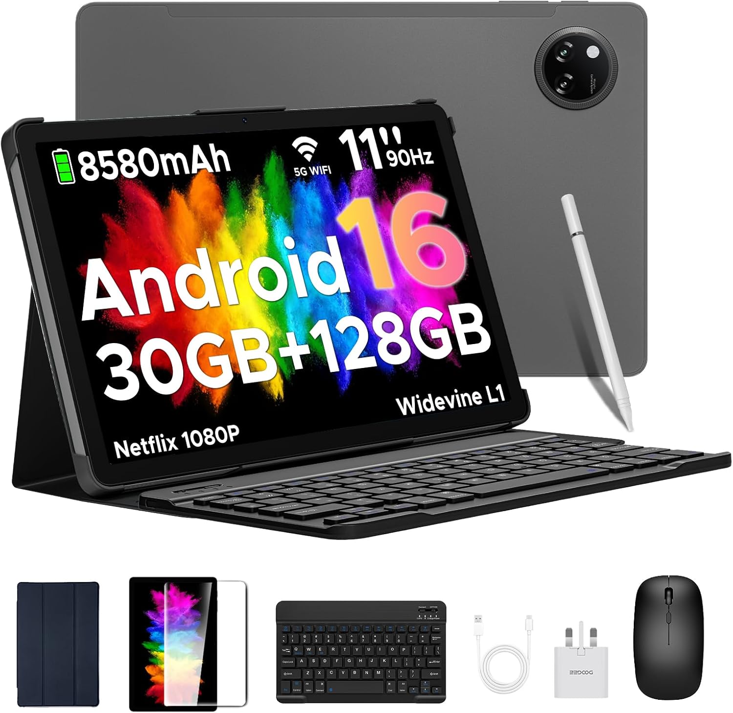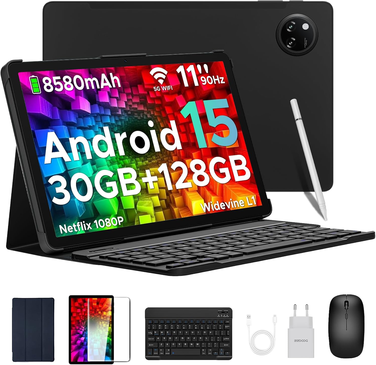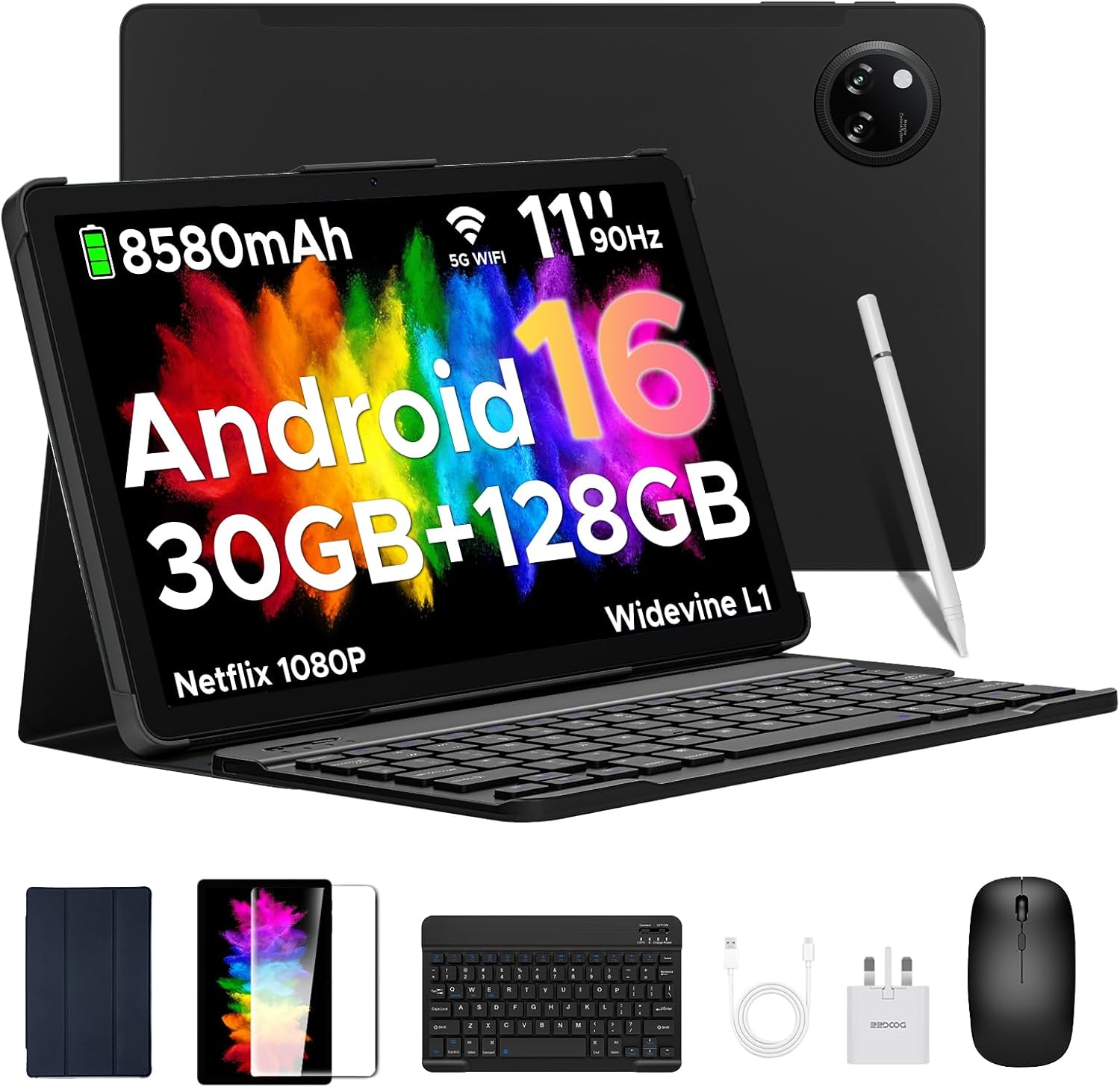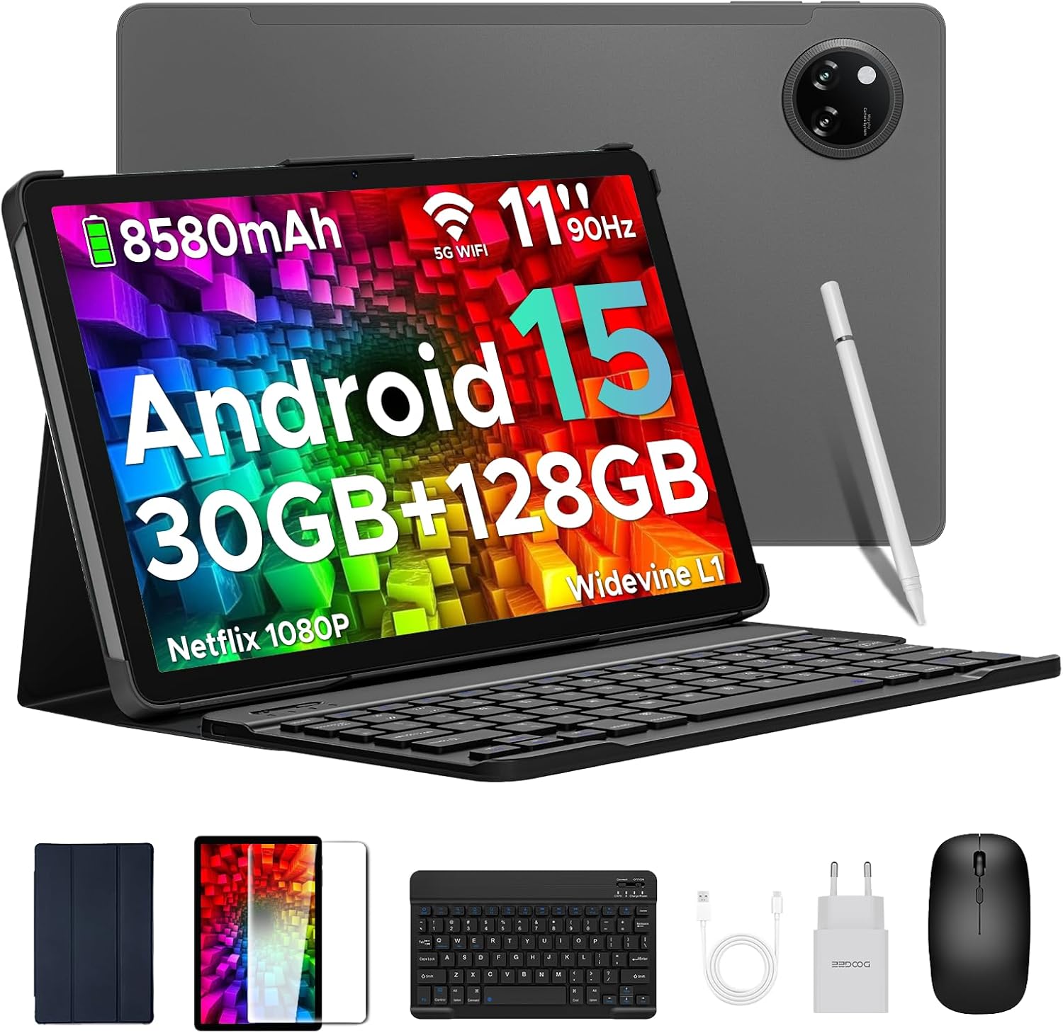 DOOGEE Tab A9 Pro+ Android 16 таблет с клавиатура 30GB RAM + 128GB ROM (2TB TF) Widevine L1 геймърски таблети, 8580mAh, Unisoc T7200 Octa Core, 13MP + 5MP, таблет 11 инча с мишка, стилус, калъф, протектор за екран