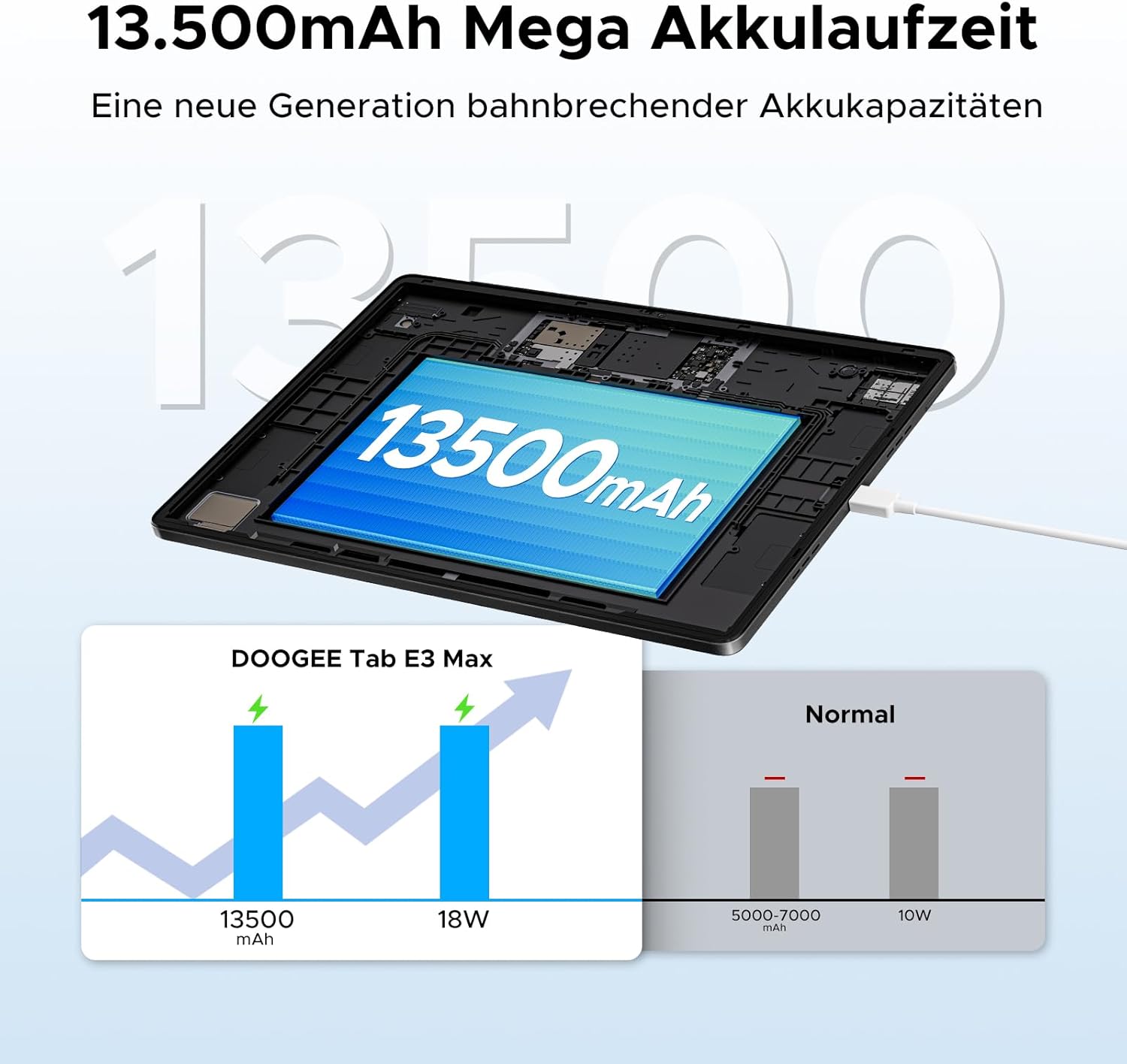 DOOGEE Tab E3 Max Android 15 таблет 14-инчов Gemini AI 13500mAh голяма батерия Helio G100 Octa Core 32GB RAM + 256GB ROM (2TB TF) 2.1K (2160 * 1440) дисплей геймърски таблет, 16MP + 8MP 4G LTE/5G WiFi/GPS/GMS