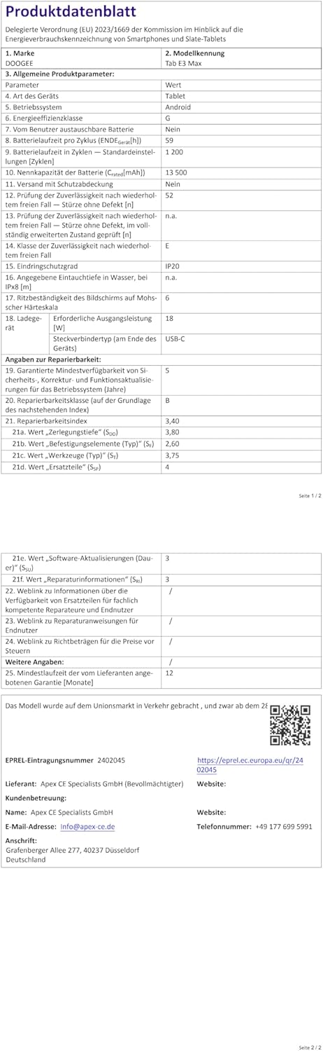 DOOGEE Tab E3 Max Android 15 таблет 14-инчов Gemini AI 13500mAh голяма батерия Helio G100 Octa Core 32GB RAM + 256GB ROM (2TB TF) 2.1K (2160 x 1440) дисплей геймърски таблет, 16MP + 8MP 4G LTE/5G WLAN/GPS