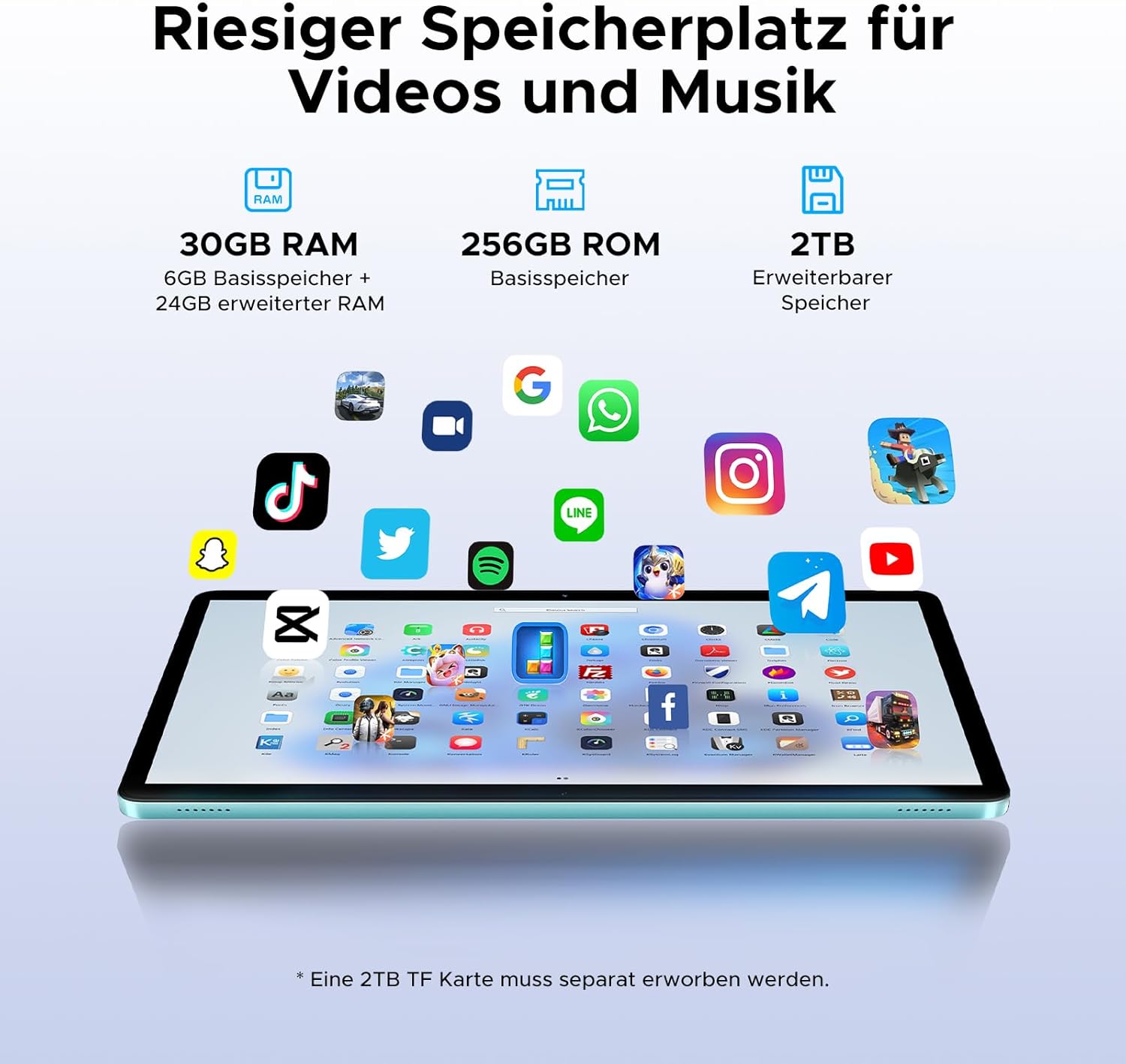 • 【30GB RAM + 256GB ROM/2TB разширяема】Таблетът DOOGEE Tab G6 със слот за SIM карта разполага с 30GB RAM (6GB физическа памет + 24GB виртуална памет) + 256GB място за съхранение и до 2TB TF карта за разширение, което позволява лесно съхранение на хиляди снимки, HD видеоклипове и офис документи. Таблетът DOOGEE Tab G6 със слот за SIM карта е оборудван с усъвършенствана технология за памет LPDDR4X за плавна многозадачност. Независимо дали е при ежедневна употреба или при голямо натоварване, LPDDR4X осигурява стабилна и ефективна системна производителност.