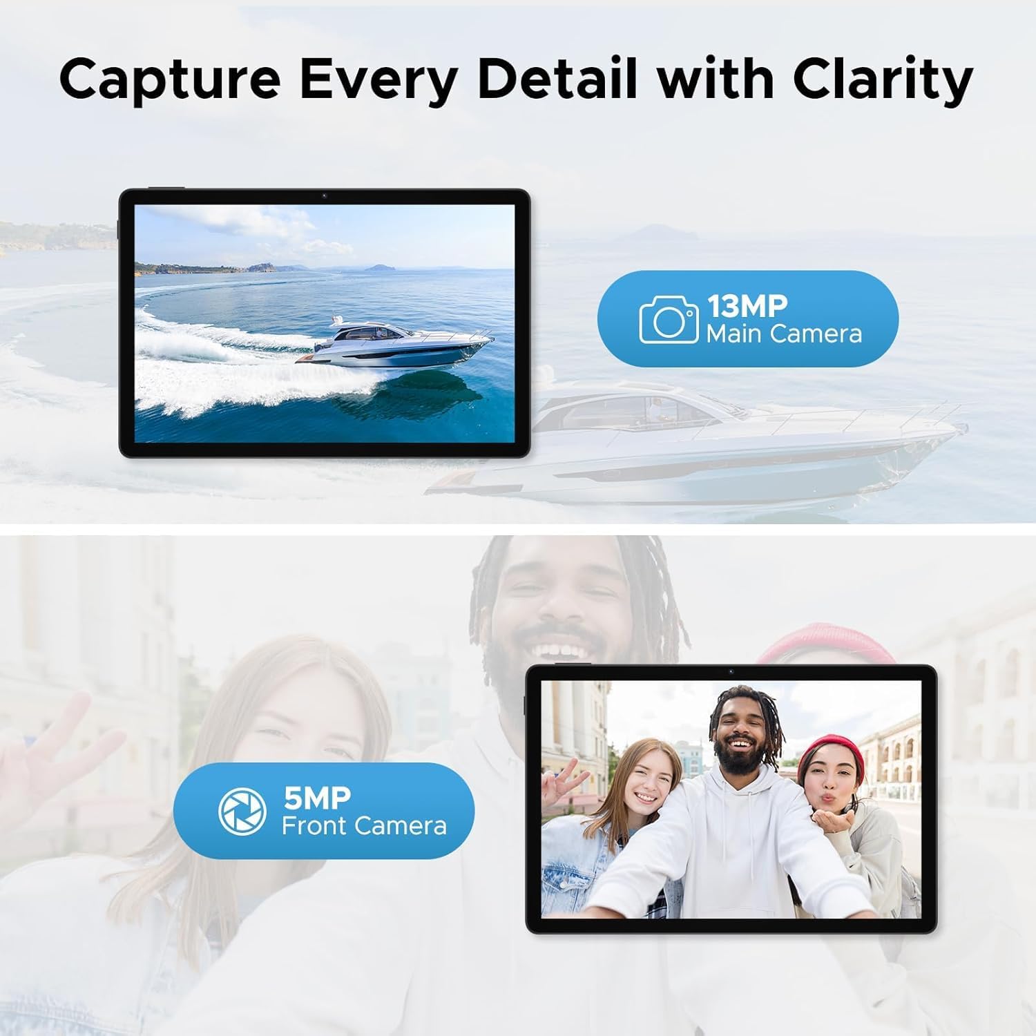 • Двоен Wi-Fi + Face ID + OTG + 3.5 мм жак за слушалки: Съвместим с честотните ленти 2.4GHz и 5GHz, той предлага по-висок капацитет, по-ниска латентност и по-стабилни скорости на мрежовата връзка. В същото време, този таблет поддържа и отключване с лице, което ви позволява бърз достъп до таблета ви и свободни ръце. Вграденият порт за зареждане Type-C и жак за слушалки осигуряват допълнително удобство, а OTG поддържа 5W обратно зареждане.