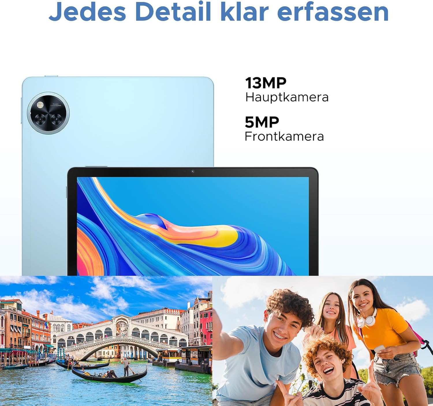 • 11-инчов 90Hz дисплей и Widevine L1+13MP камера: Таблетът DOOGEE U11 Pro с Android разполага със зашеметяващ 11-инчов дисплей с честота на опресняване от 90Hz, предлагащ ултраплавно скролиране и ясни детайли за стрийминг. Благодарение на сертификата Widevine L1, можете да се наслаждавате на 1080P HD съдържание на Prime Video и още много други без компромис. Оборудван с 5MP предна камера и 13MP задна камера, можете да заснемете и фотографирате най-хубавите си спомени.