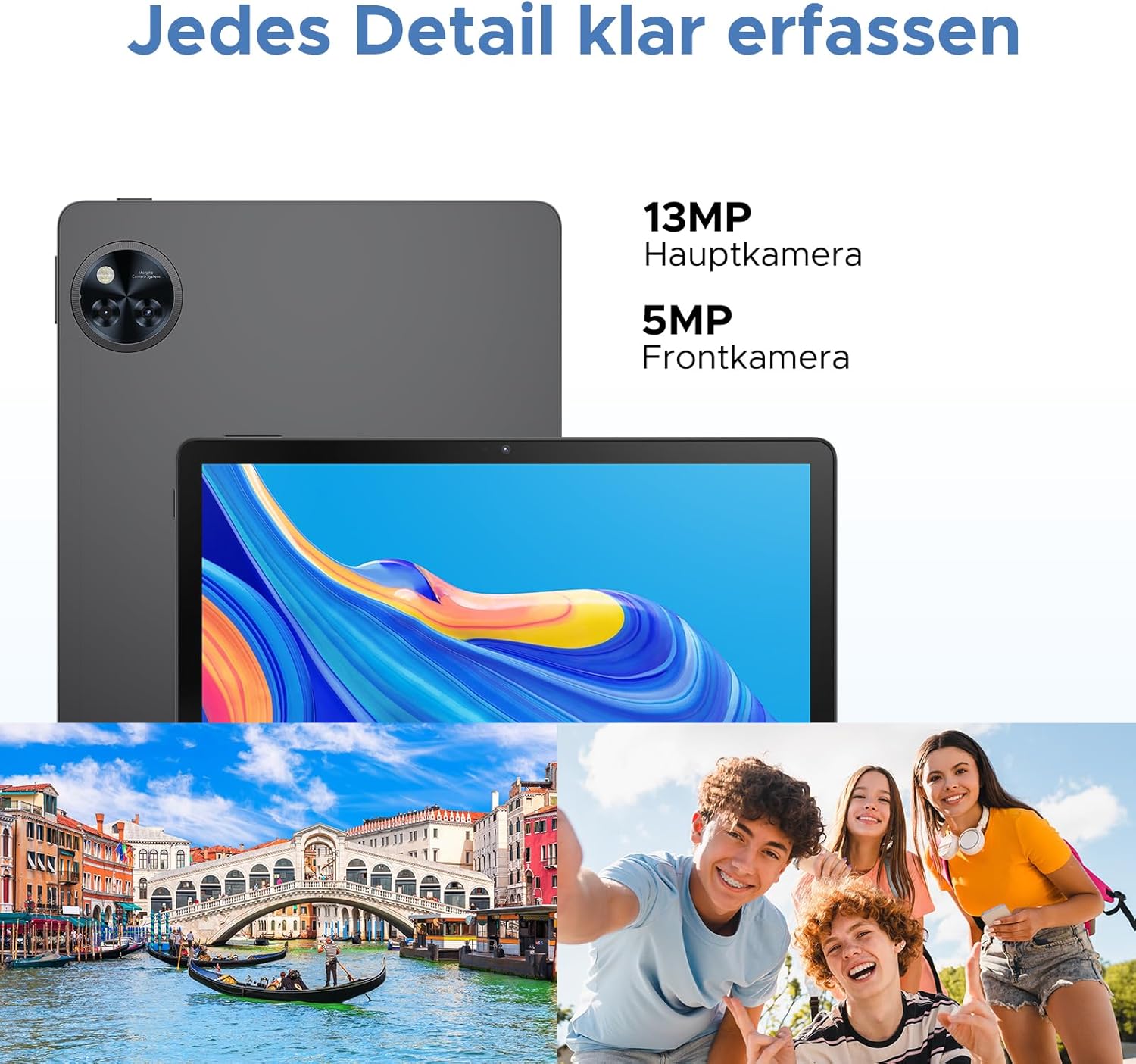 • 11-инчов 90Hz дисплей и Widevine L1+13MP камера: Таблетът DOOGEE U11 Pro с Android разполага със зашеметяващ 11-инчов дисплей с честота на опресняване от 90Hz, предлагащ ултраплавно скролиране и ясни детайли за стрийминг. Благодарение на сертификата Widevine L1, можете да се наслаждавате на 1080P HD съдържание на Prime Video и още много други без компромис. Оборудван с 5MP предна камера и 13MP задна камера, можете да заснемете и фотографирате най-хубавите си спомени.