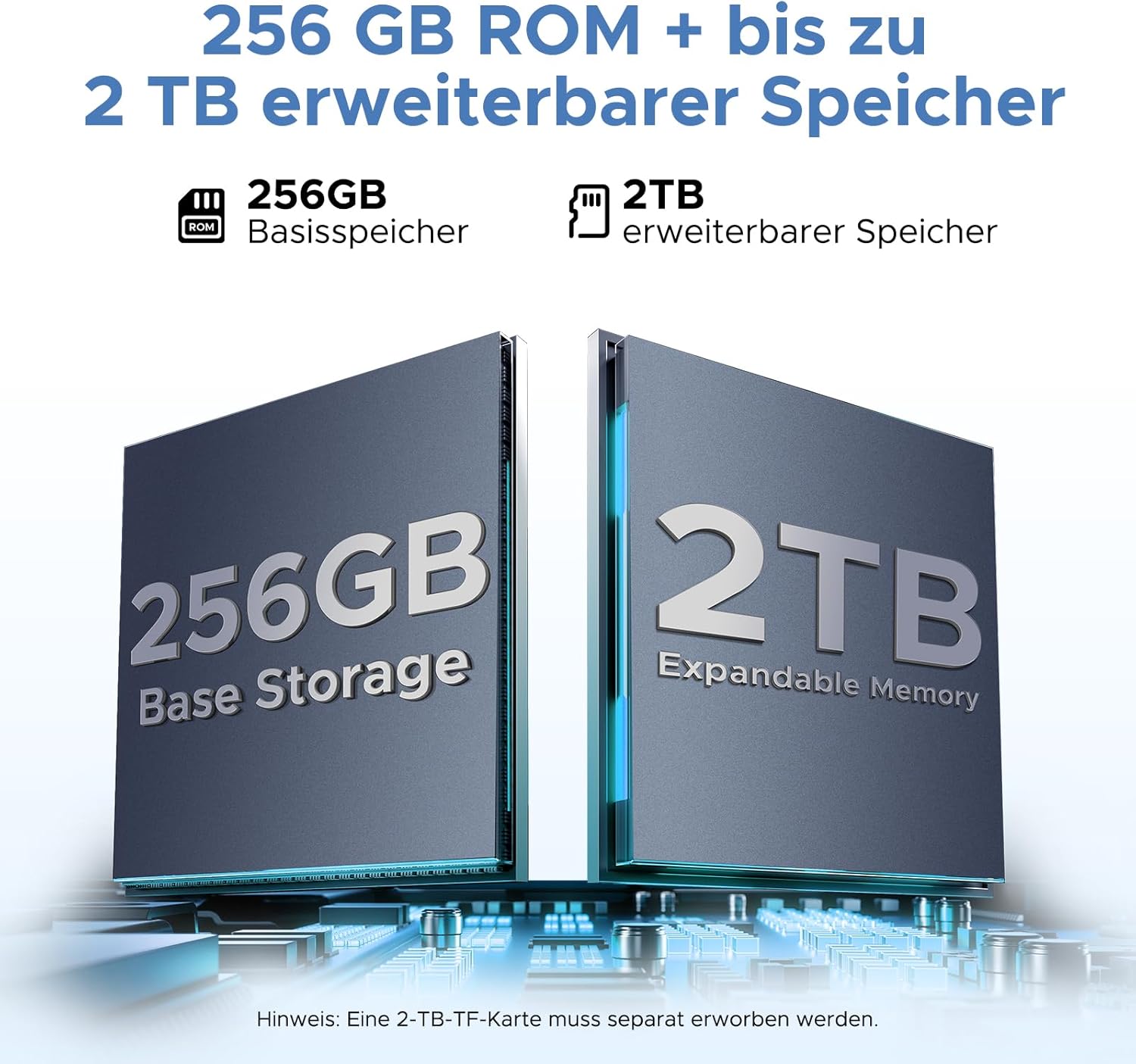 • 【30GB RAM + 256GB ROM/2TB TF карта】Таблетът DOOGEE U11 Pro Android 16 е мощен и ефикасен, оборудван с 30GB RAM (6GB физическа + 24GB разширена) и 256GB ROM, което позволява плавна многозадачност и бърза обработка на данни. Разширяемата памет до 2TB чрез TF карта ви позволява лесно да съхранявате всичките си приложения, медийни файлове и файлове. Новият мениджър на паметта предлага интелигентни предложения за почистване, за да поддържа таблета ви с оптимална производителност.