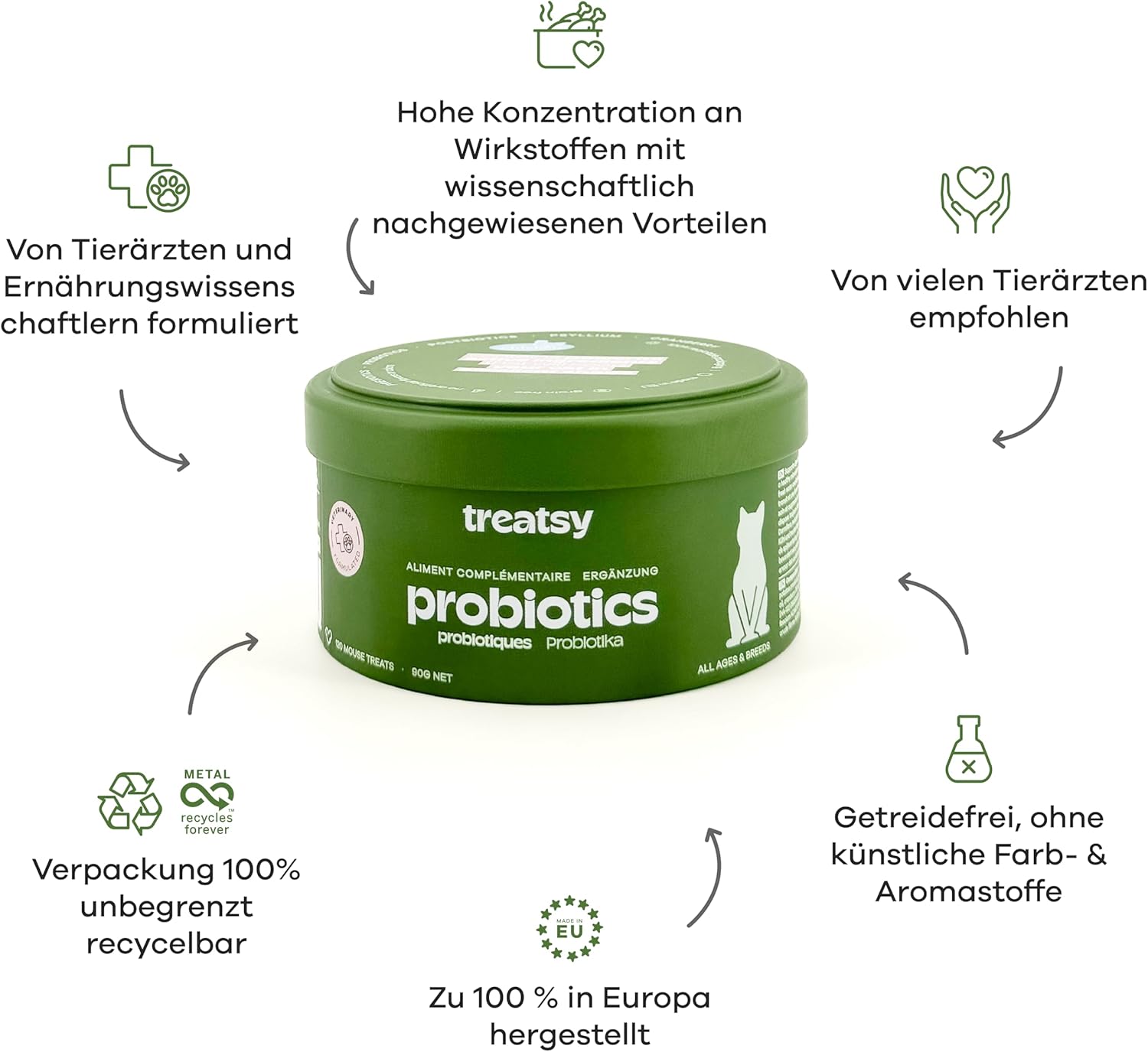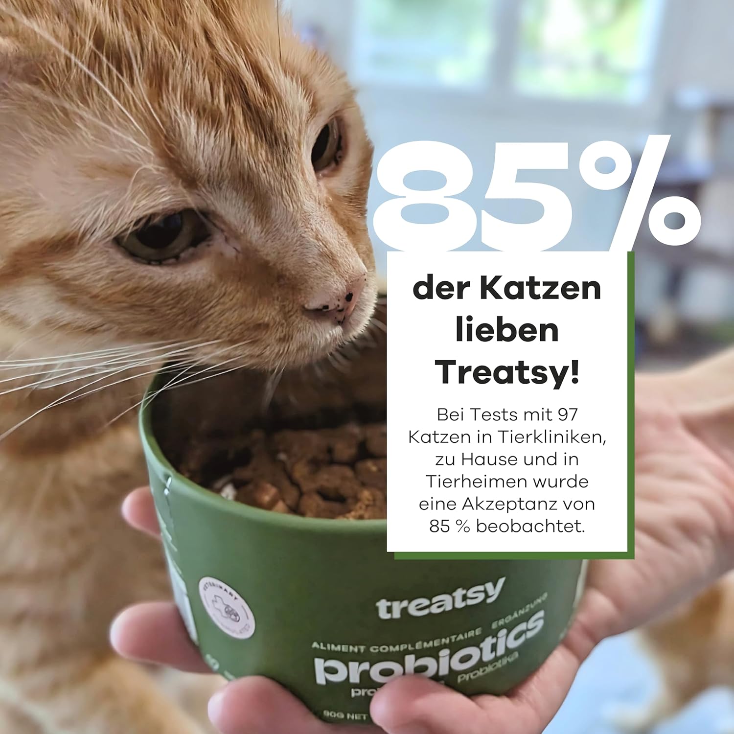 • ОТЛИЧНО ПРИЕМАНЕ, ДОРИ ОТ ИЗКЛЮЧИТЕЛНО РАЗДРАЗНИ КОТКИ: 85% процент на приемане в тестове във ветеринарни клиники, у дома и в приюти за животни. Дъвчащите пръчици са по-лесни за приложение от таблетки, капсули или прахове – което прави Treatsy любимец на ветеринарните лекари и собствениците на котки!