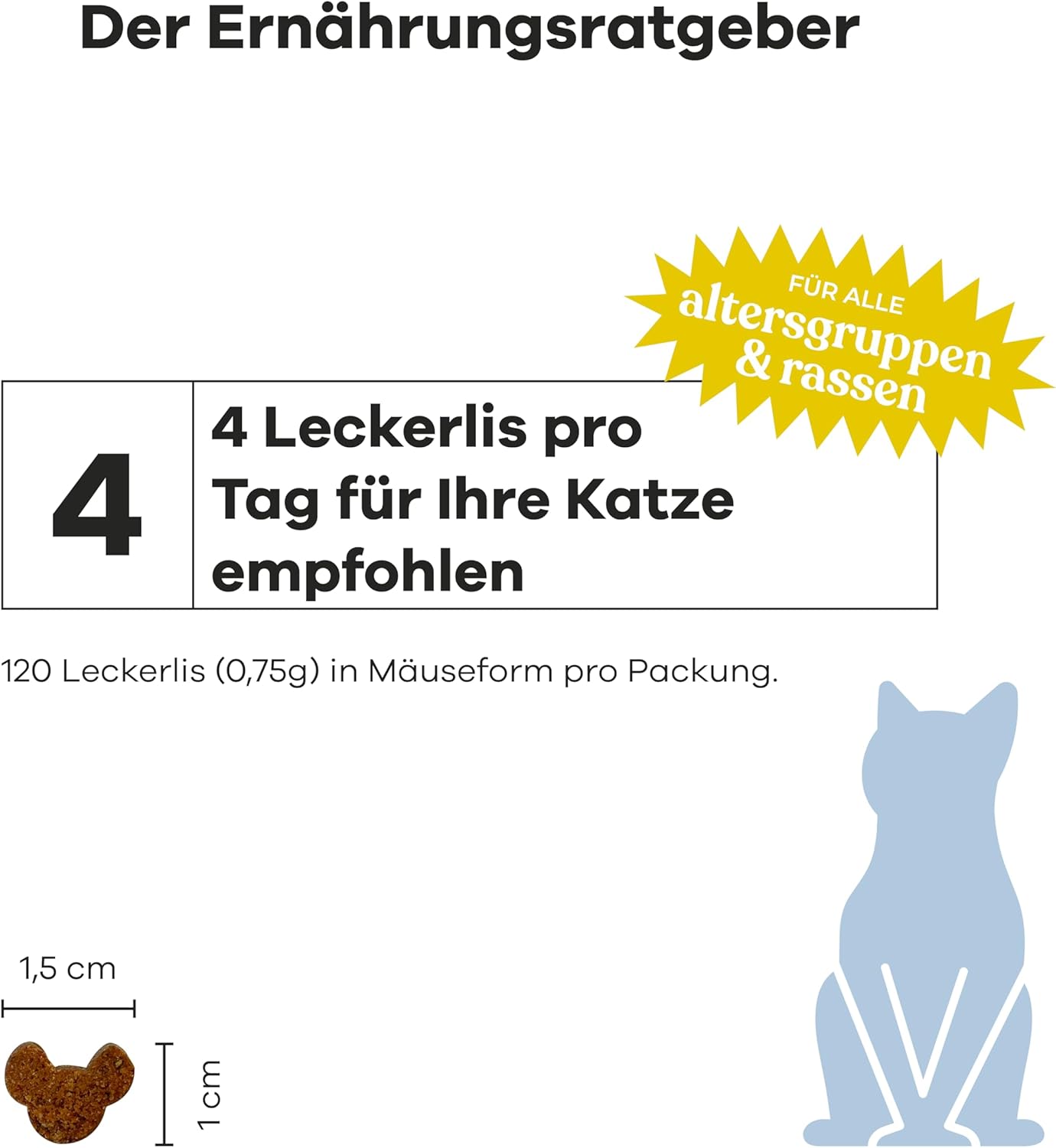 • ЗА КОТКИ ОТ ВСИЧКИ ПОРОДИ И ВЪЗРАСТИ: Препоръчителната дневна доза е 4 дъвчащи пръчици по 0,75 г всяка за котка с тегло 4–5 кг. Една кутия съдържа 120 дъвчащи пръчици.