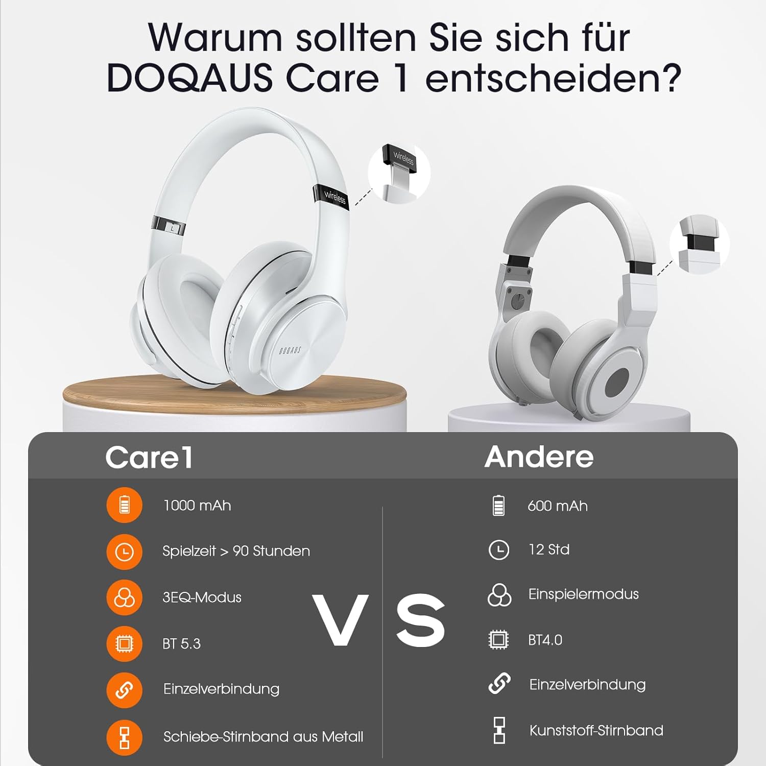 Extended warranty by 2 years: Register the Doqaus product now and extend the warranty by 2 years. DOQAUS guarantees free replacement or repair of all defective parts or free replacement of the entire product. Note: The warranty does not include serious damage due to external influences. Information about our wireless Bluetooth headphones via the ear, please contact customer service directly, the email will be processed within 24 hours. Email: [email protected]